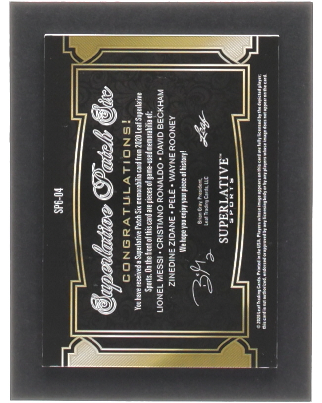 2020 Leaf Superlative Patch Six #4 #1/4 Lionel Messi / David Beckham / Pele / Cristiano Ronaldo / Zinedine Zidane / Wayne Rooney