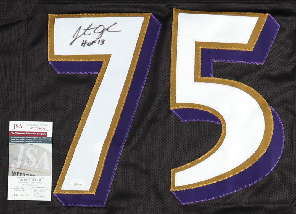 Jonathan Ogden Signed Career Highlight Stat Jersey Inscribed "HOF 13" (JSA)