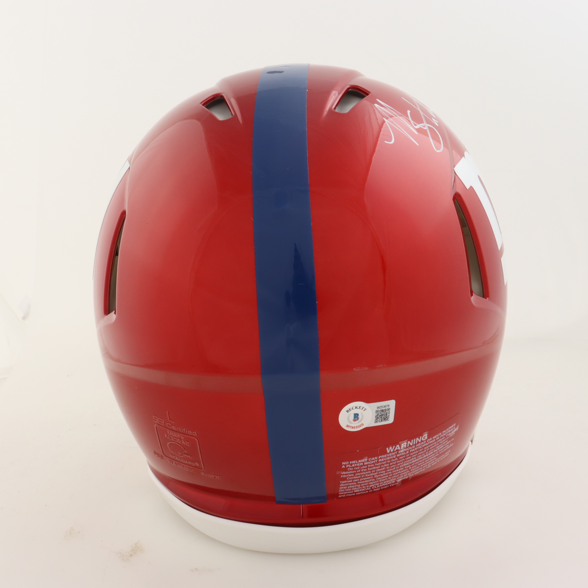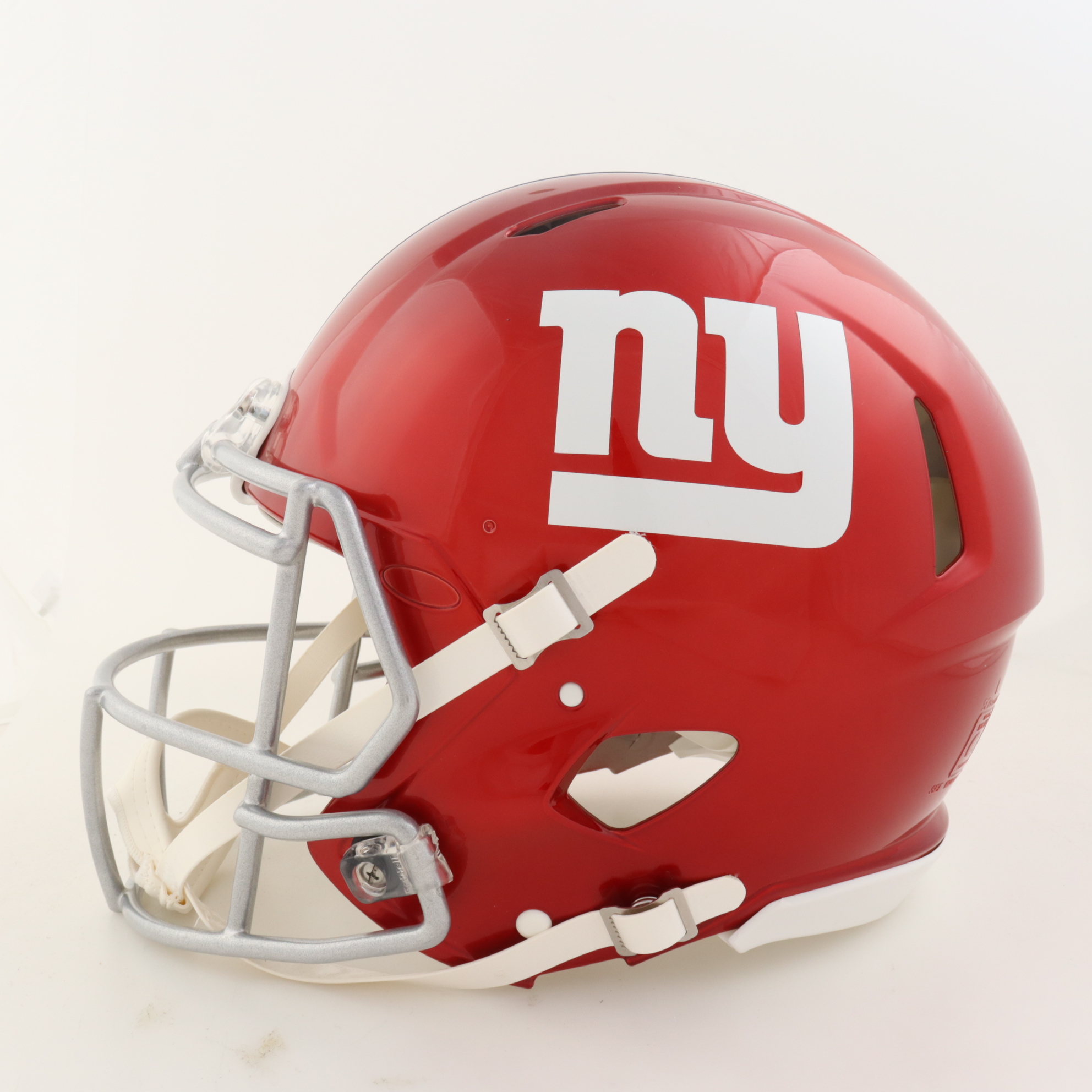Riddell New York Giants full-size authentic on-field Flash Alternate Speed helmet. Hand-signed and inscribed by Michael Strahan (HOF).