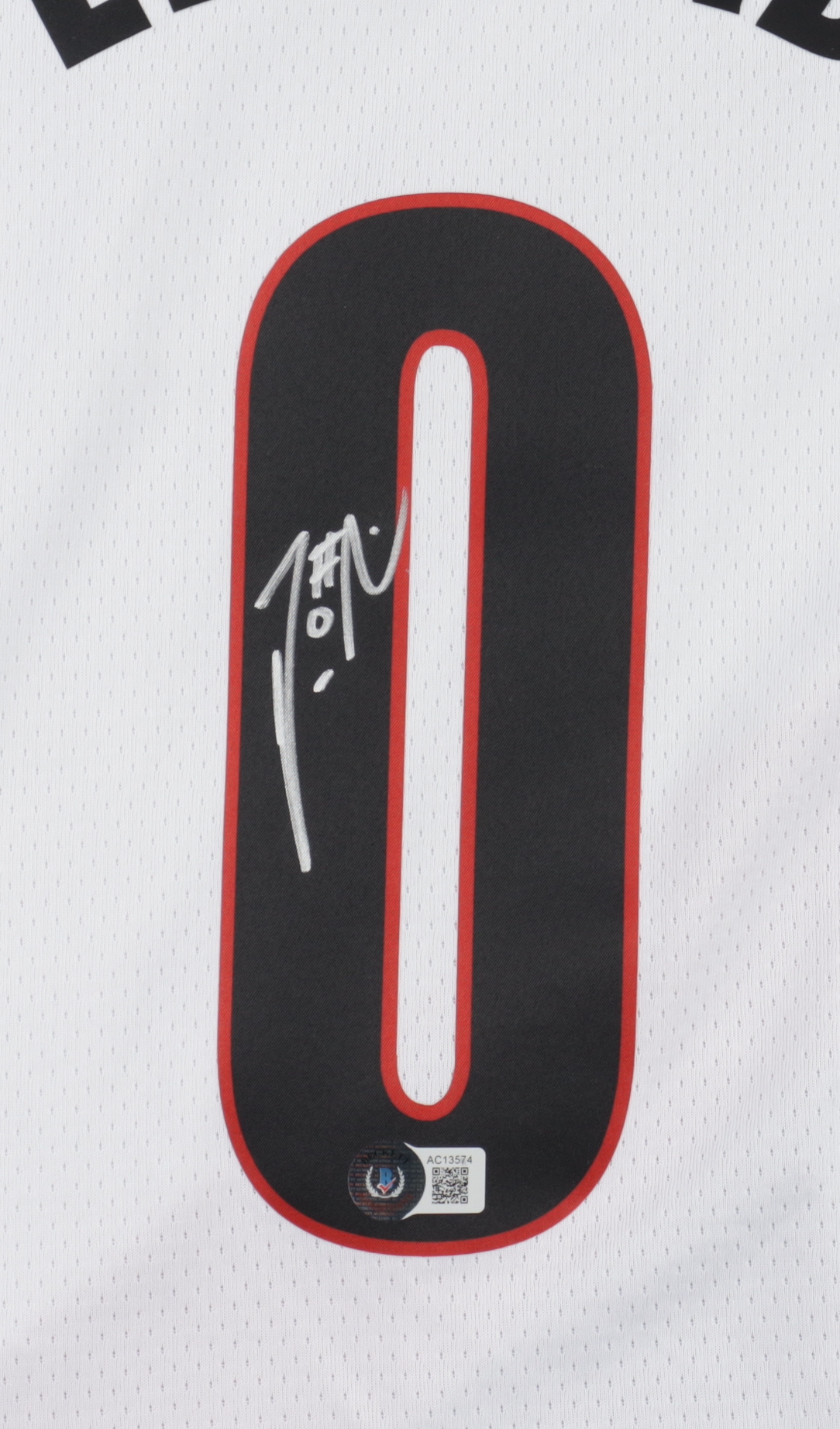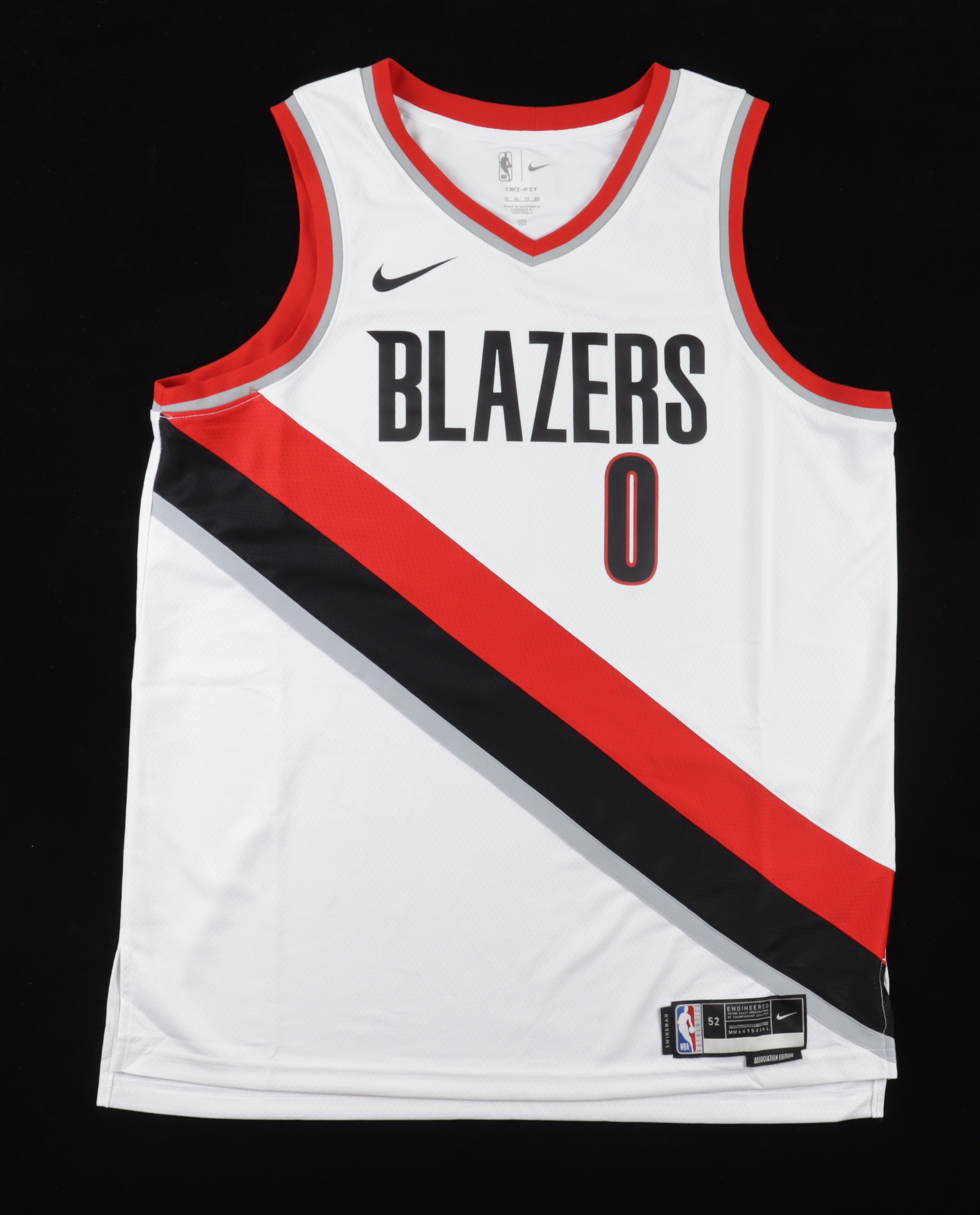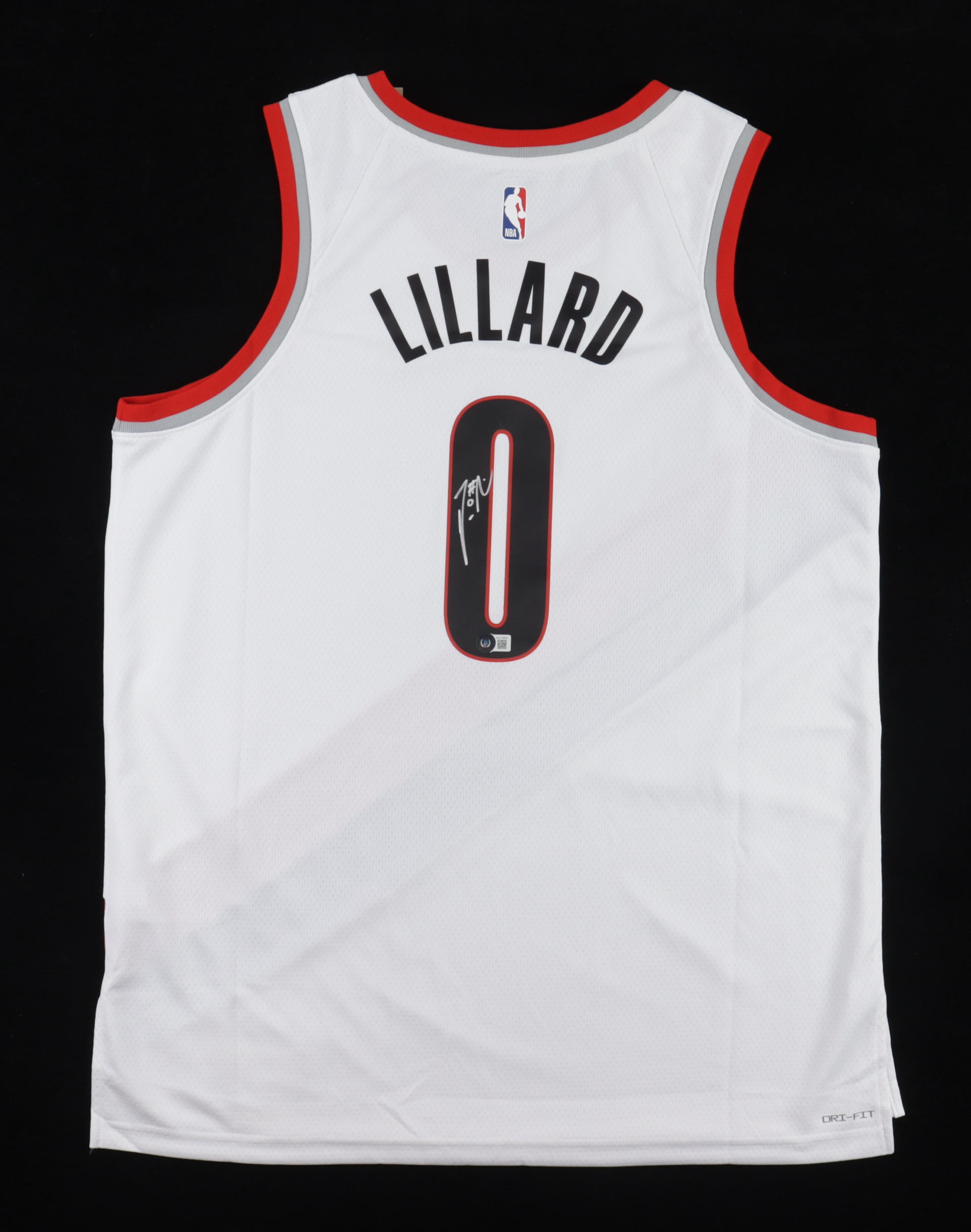 Nike on-court style jersey. Everything is printed on, size 52. Hand-signed by Damian Lillard.
