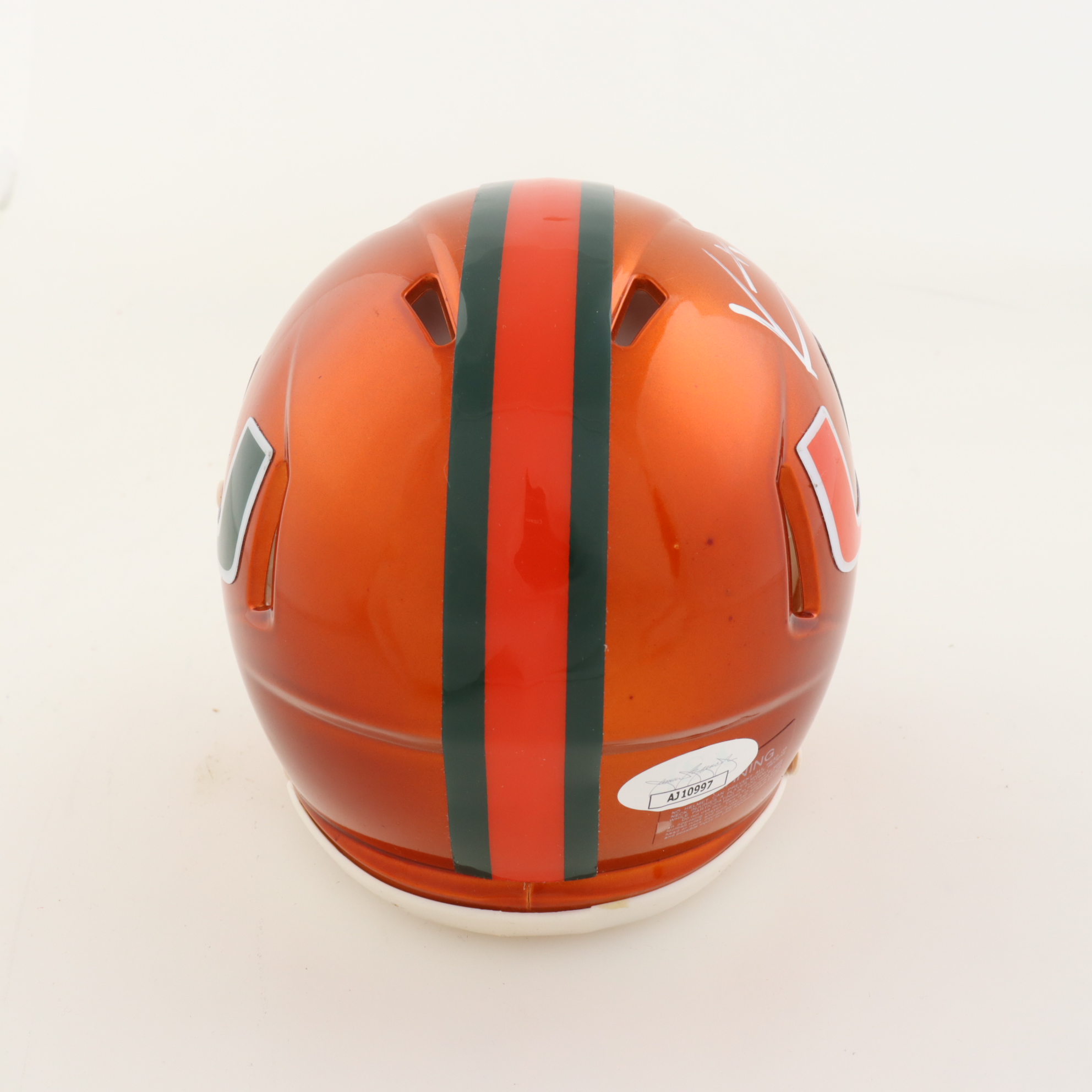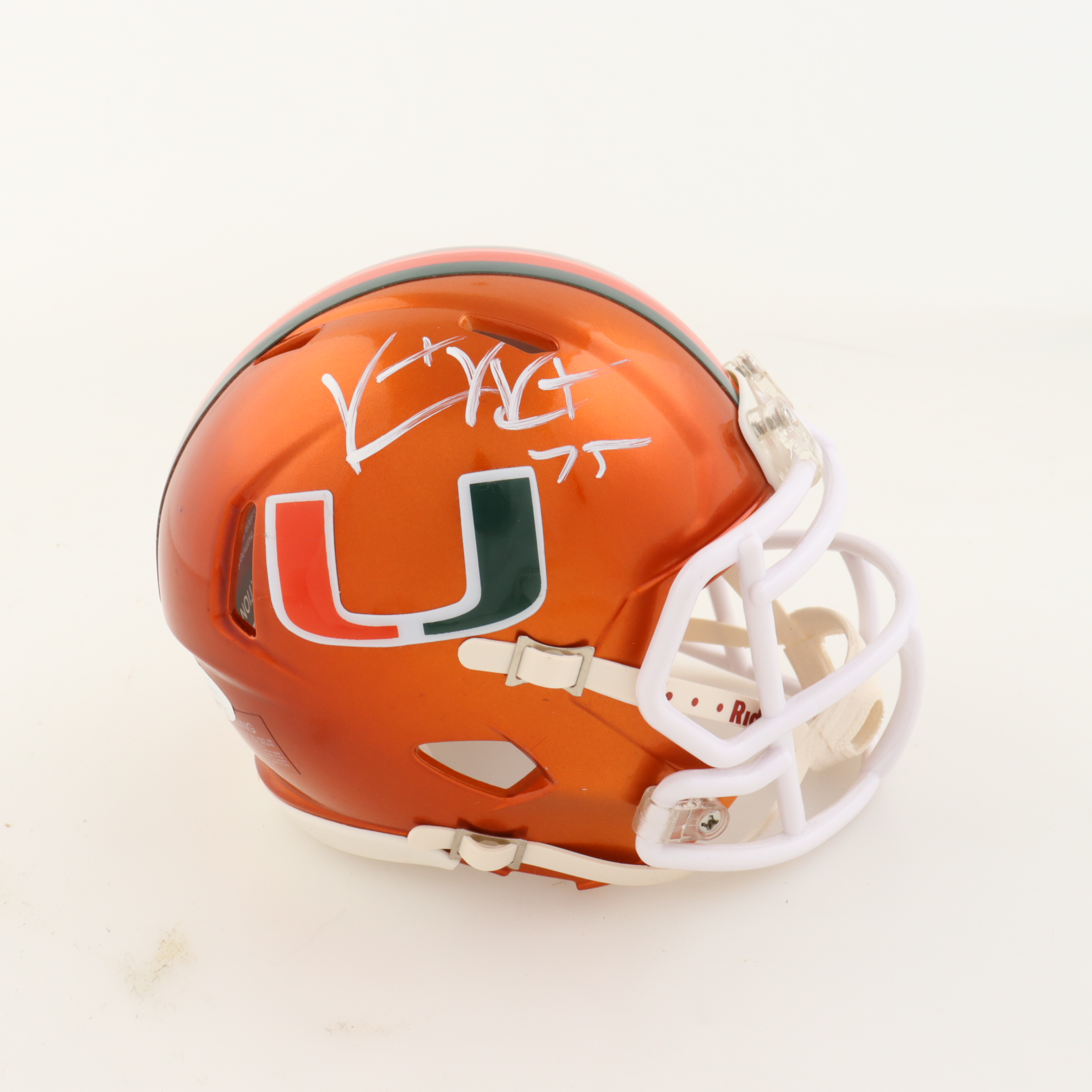 Riddell Miami Hurricanes Flash Alternate Speed mini helmet. Hand-signed by Vince Wilfork.