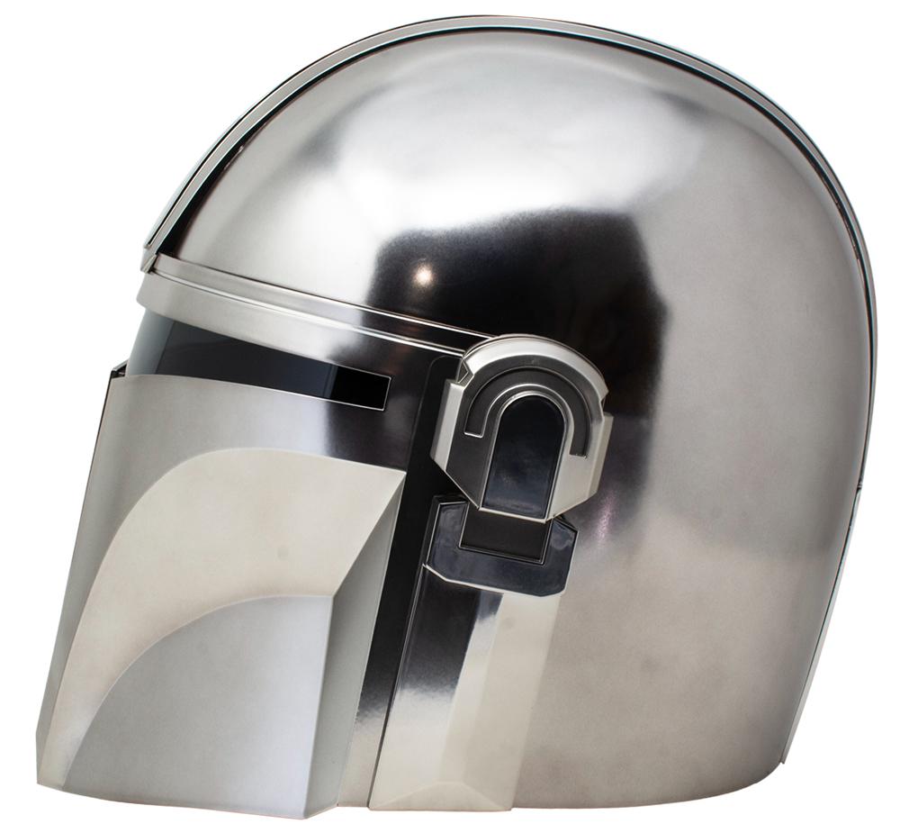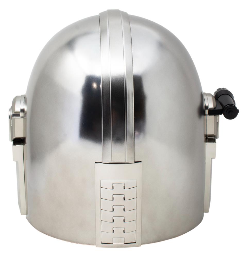 His body is shielded in beskar armor, his face hidden behind a T-visored mask, and his past is wrapped in mystery. Featuring highly-detailed deco, series-inspired design, interior padding, and an adjustable fit, this helmet is a great addition to any Star Wars collection. This screen-inspired reproduction Mandalorian helmet features a removable tactical light, as well as dual red interior lights that can be activated while the helmet is upside-down