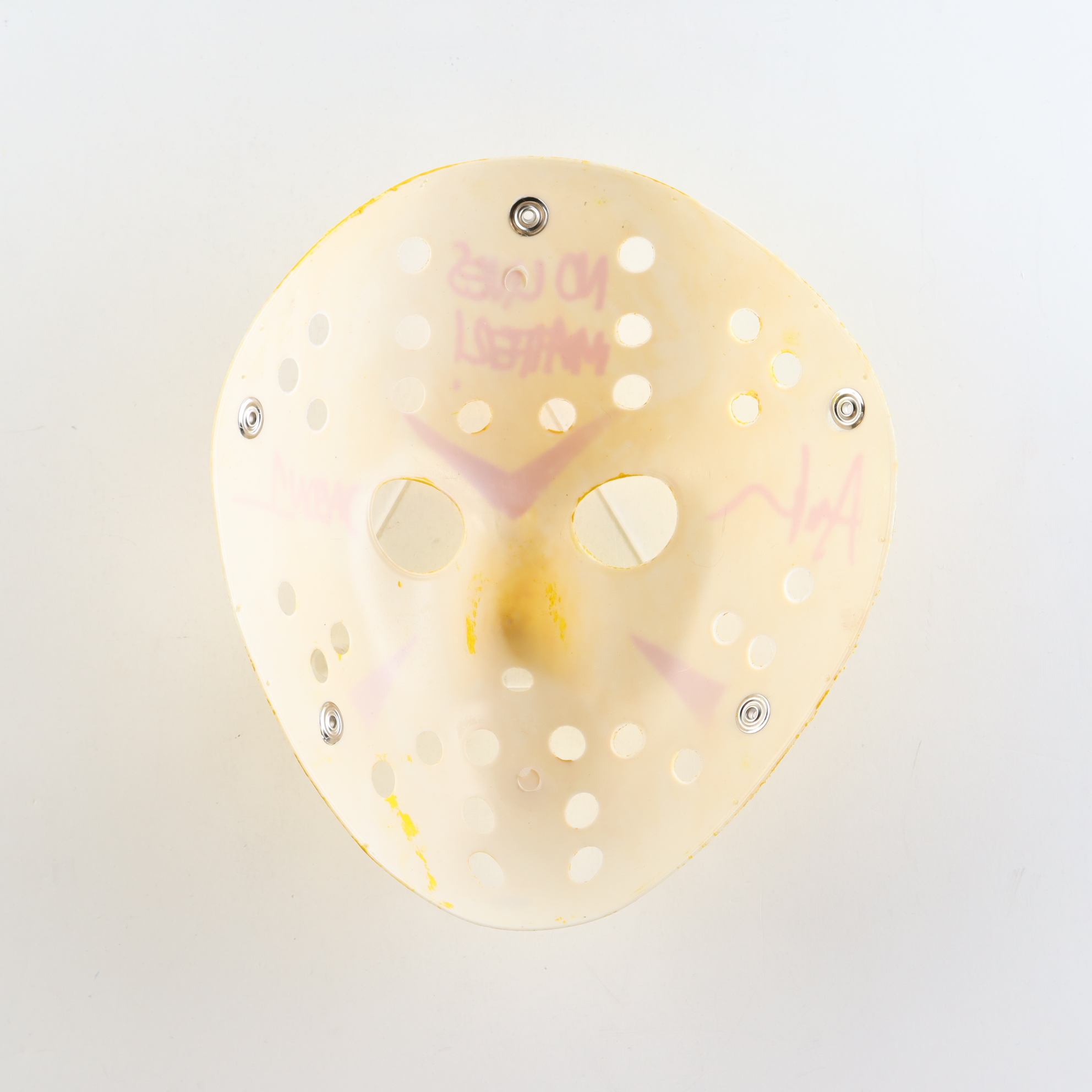 "Friday the 13th" Jason Voorhees full-size replica mask. Hand-signed and inscribed by Ari Lehman (Jason Voorhees).