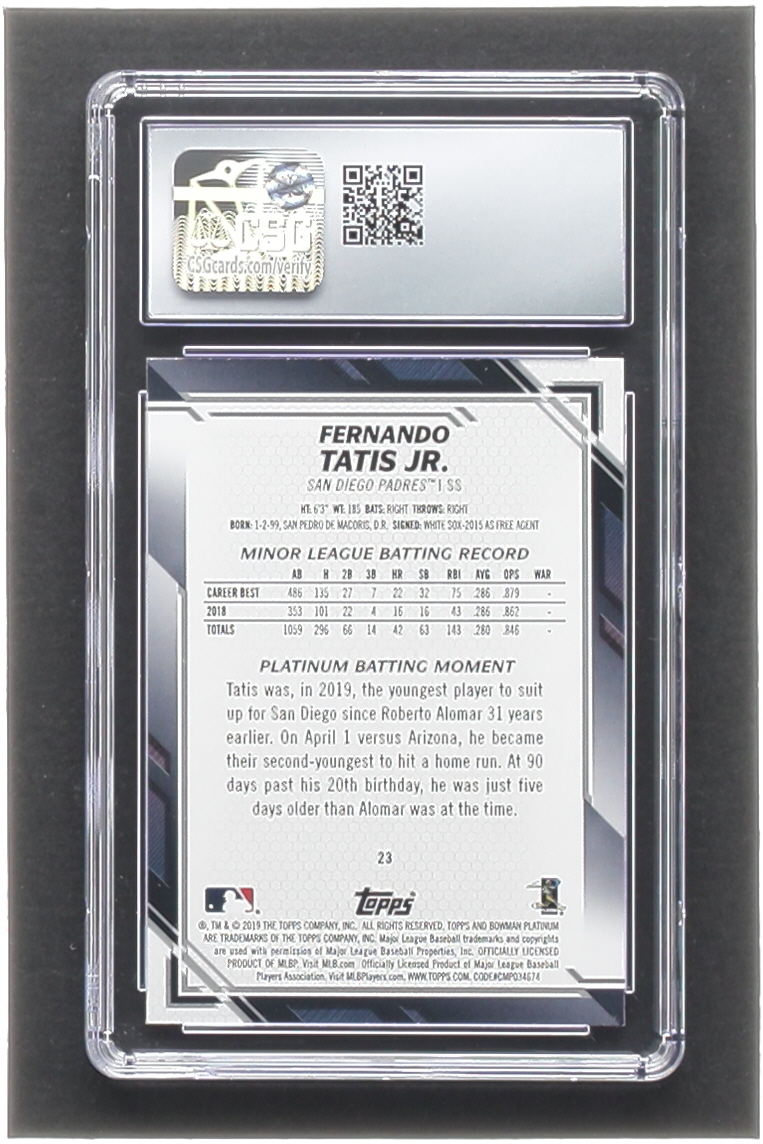Fernando Tatis Jr. 2019 Bowman Platinum Base Set Variations #23 RC (CSG 10)