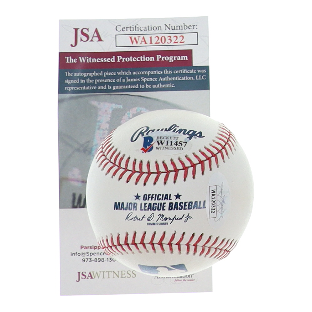 The autograph includes an official James Spence Authentication (JSA) hologram and matching COA as well as an official Beckett Authentication Services serially numbered hologram for authenticity purposes. The signing of this item was witnessed by JSA and Beckett.