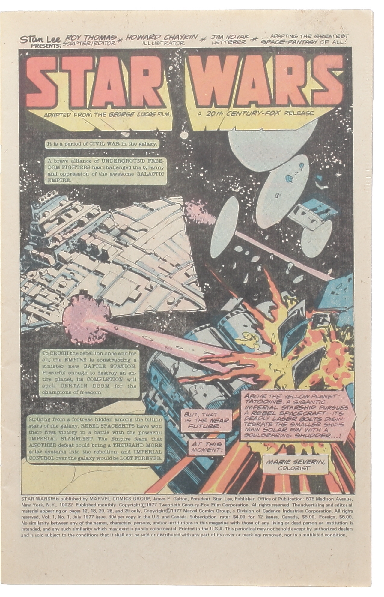 July 1977 "Star Wars" Issue #1 Marvel comic book. Please see photos for details regarding the condition of the comic.