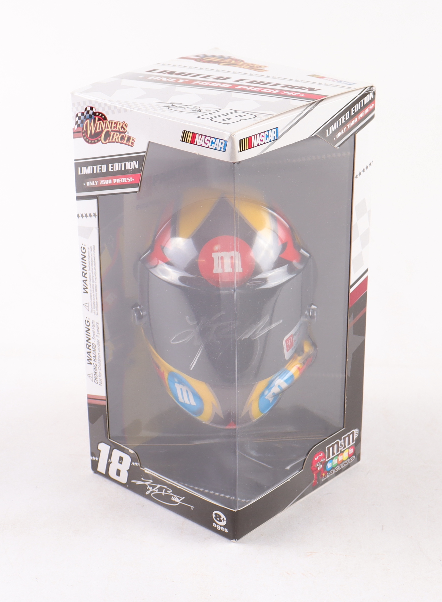 Winner's Circle mini NASCAR helmet hand-signed on the visor by Kyle Busch.