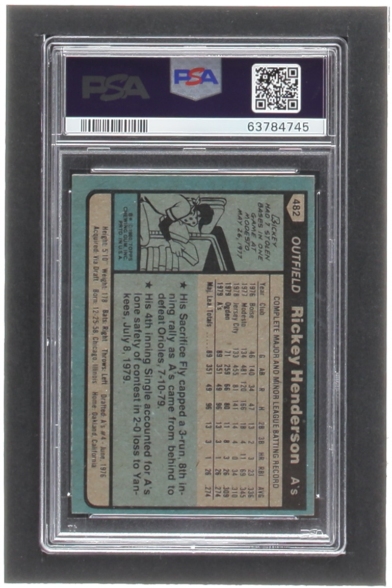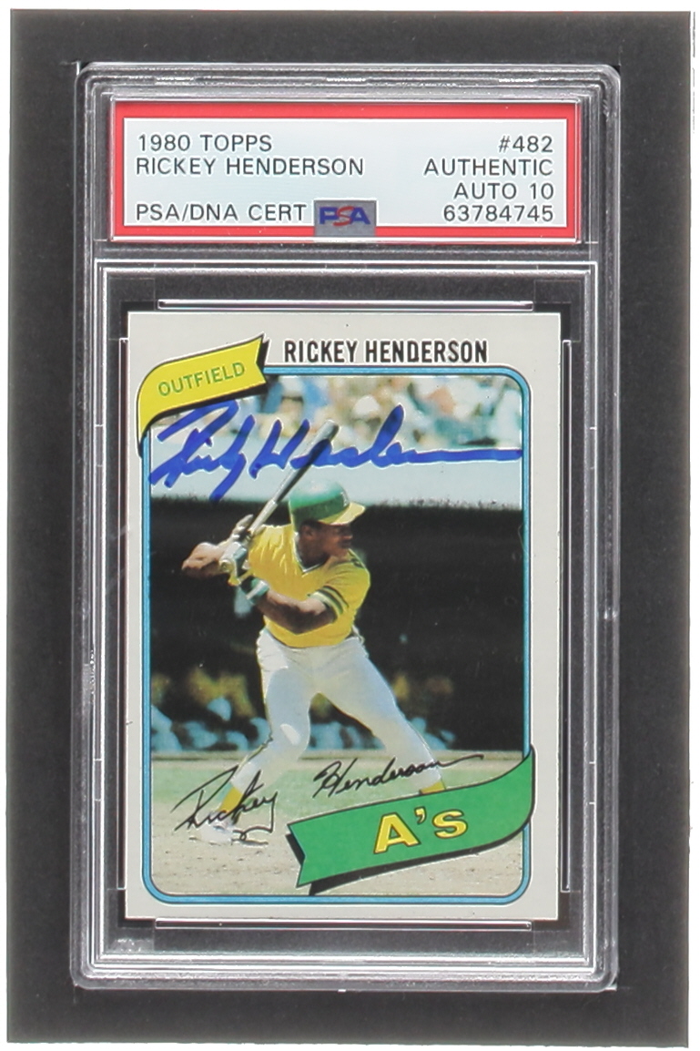 Rickey Henderson Signed 1980 Topps #482 RC (PSA)