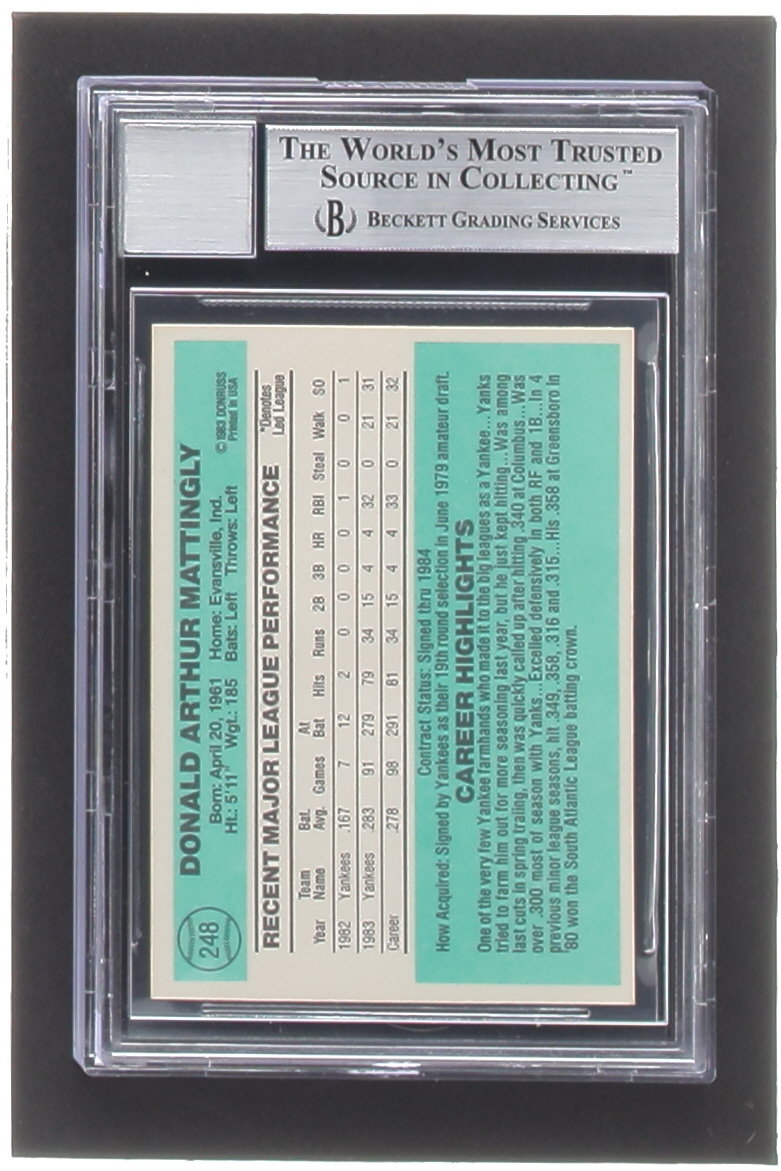 Don Mattingly Signed 1984 Donruss #248 RC (BGS)