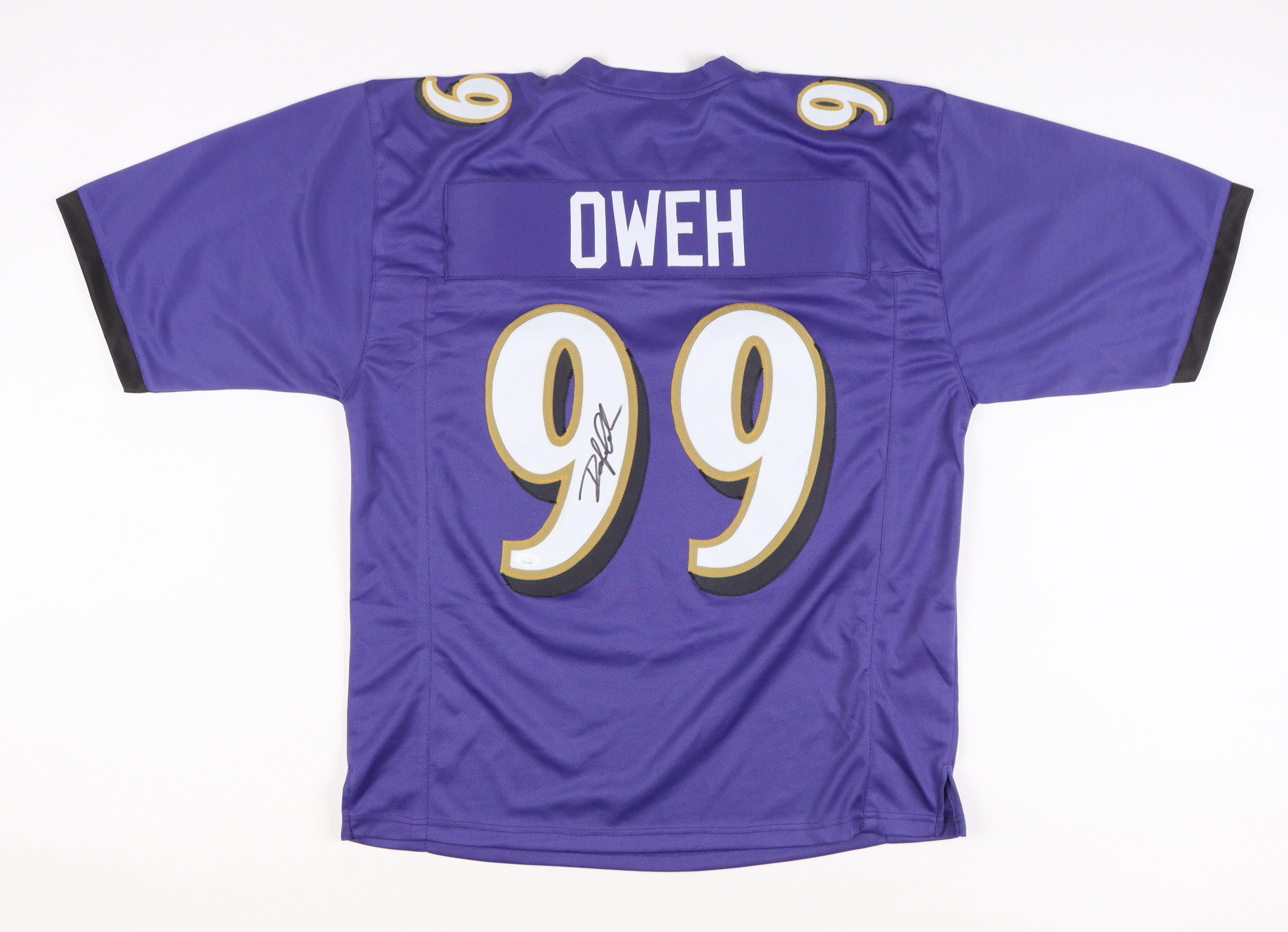 Custom on-field style jersey. Everything is sewn on, size XL. Hand-signed by Odafe Oweh.