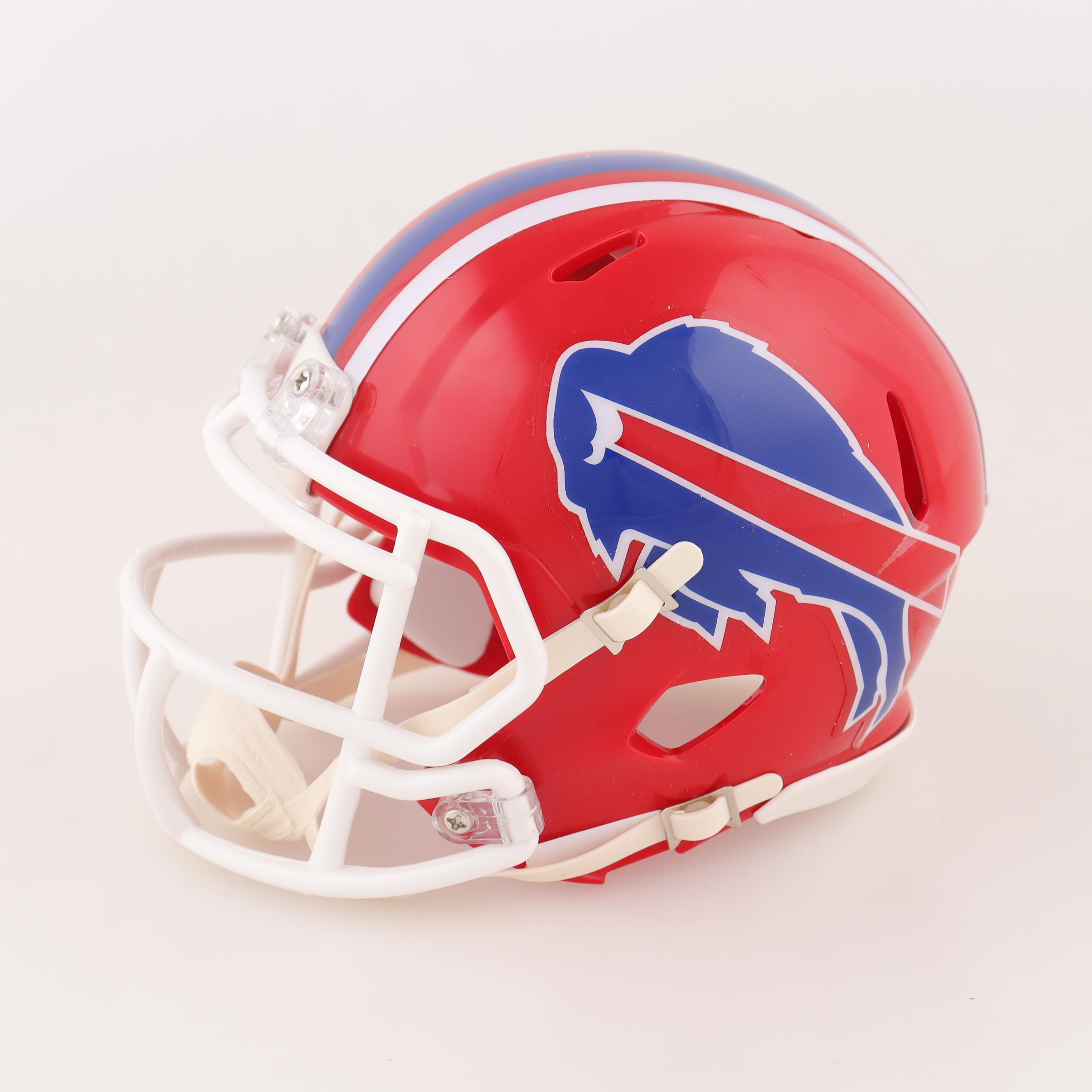 Riddell Buffalo Bills flash alternate speed mini helmet. Hand-signed and inscribed by Thurman Thomas (HOF).