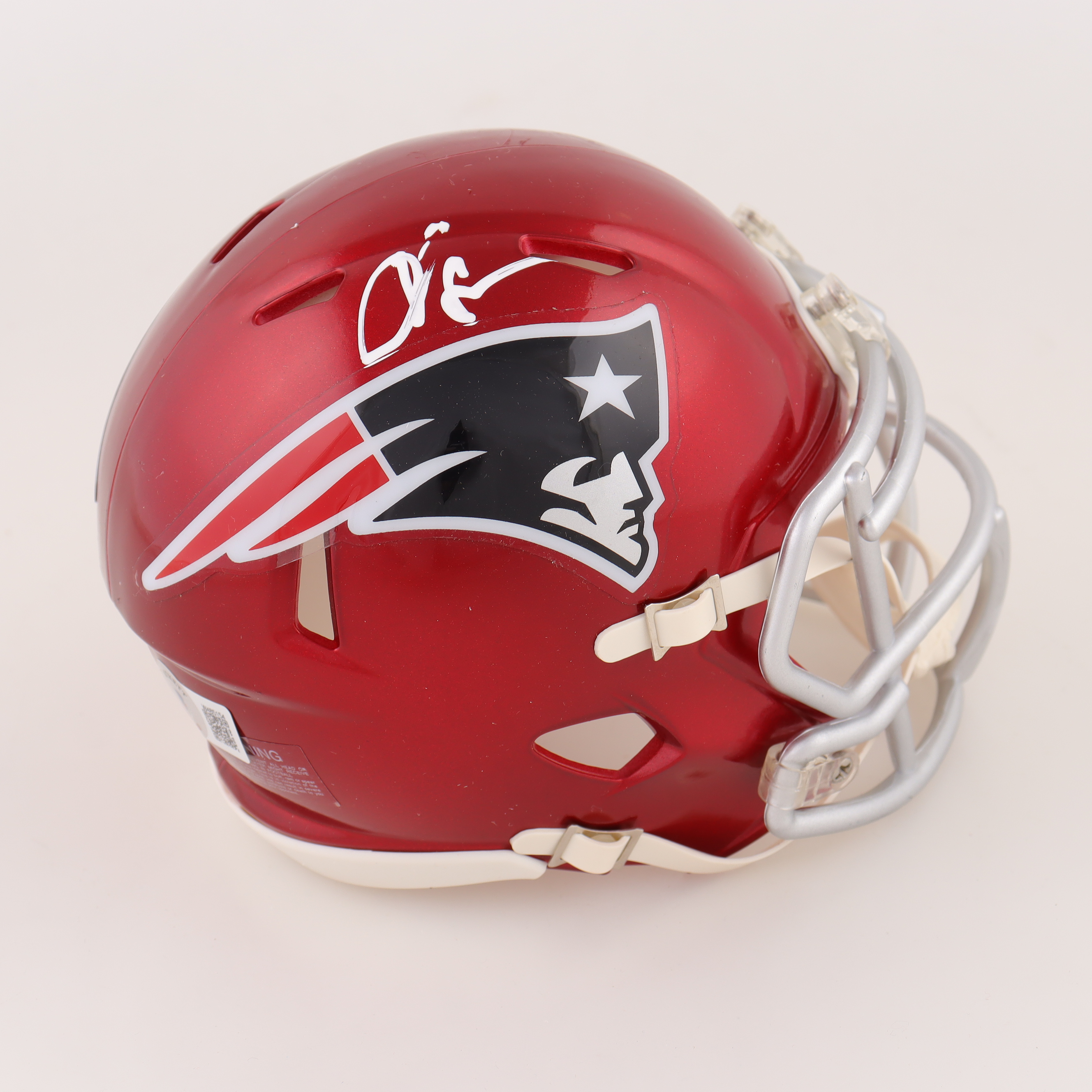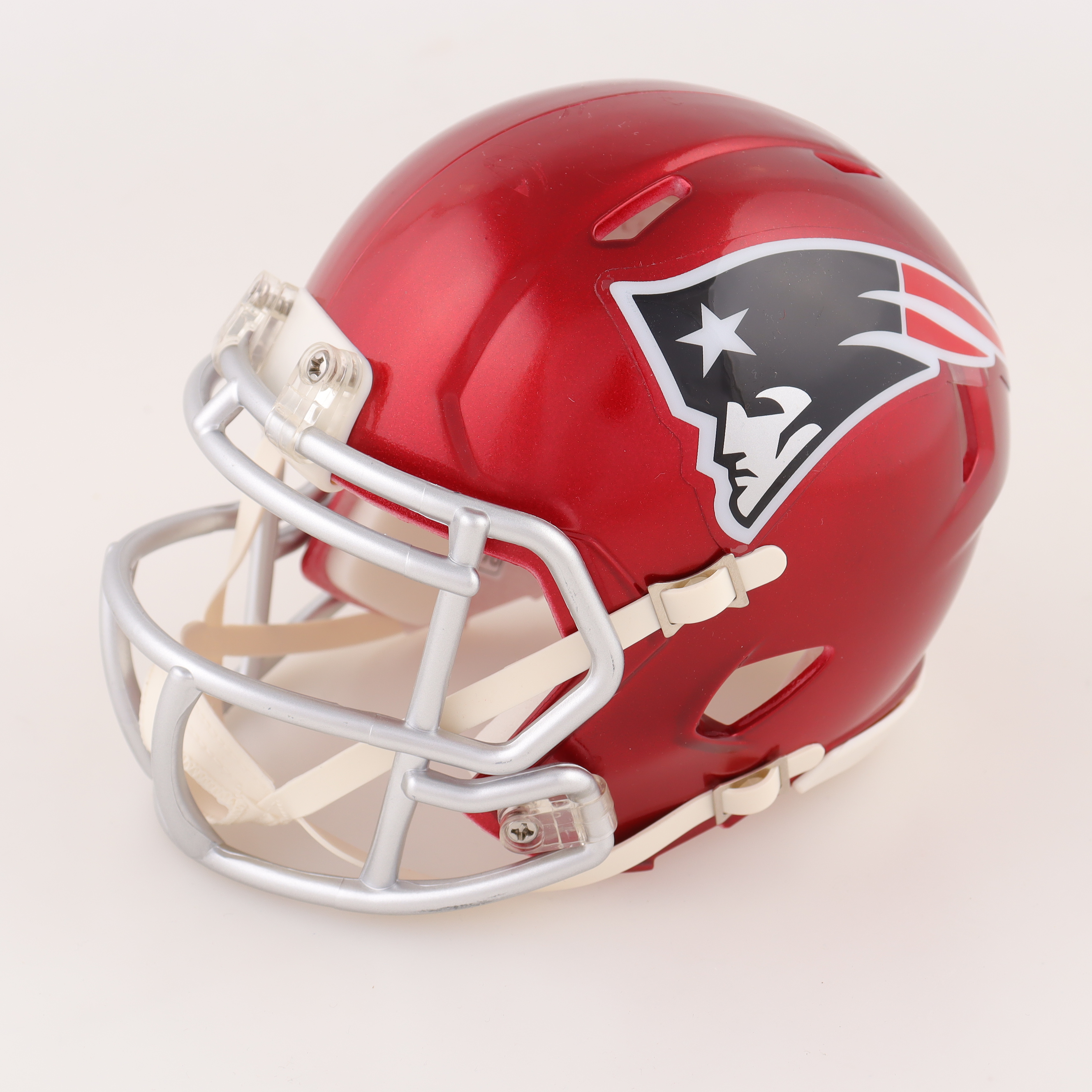 Riddell New England Patriots Flash Alternate Speed mini helmet has been hand-signed by Chad Johnson.