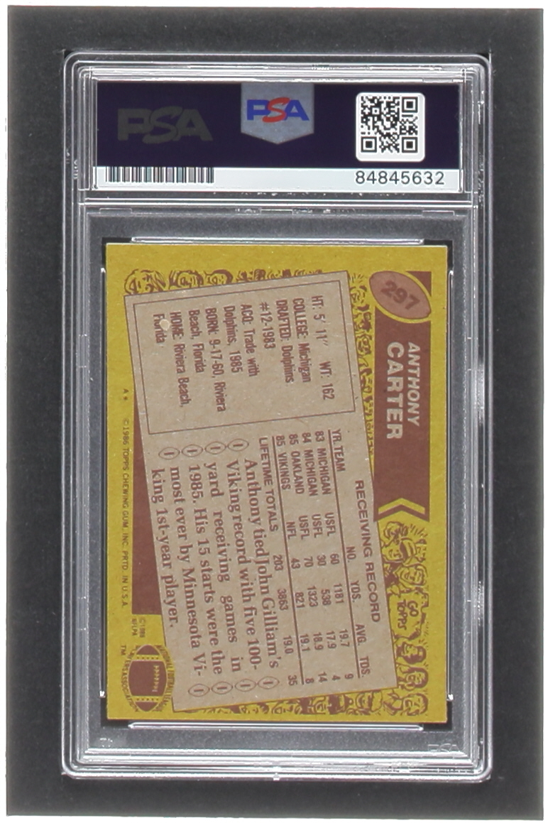 Anthony Carter Signed 1986 Topps #297 RC (PSA)