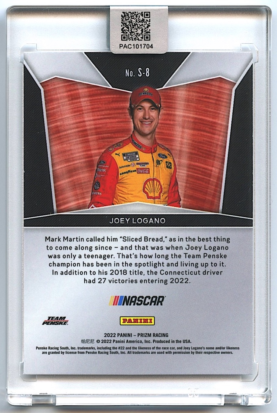 Joey Logano Signed 2022 Panini Prizm Spotlight #8 (PA Encapsulated)