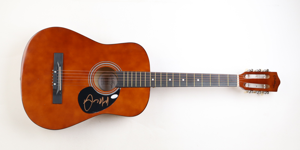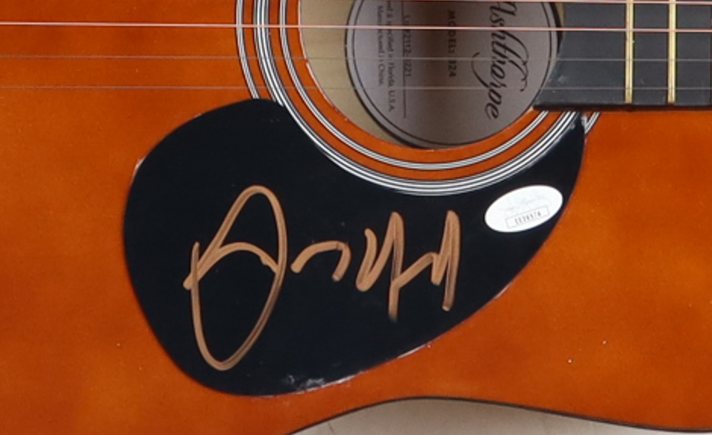 Acoustic guitar measures approximately 38" in length and has been hand-signed on the pick-guard by Dennis Quaid.