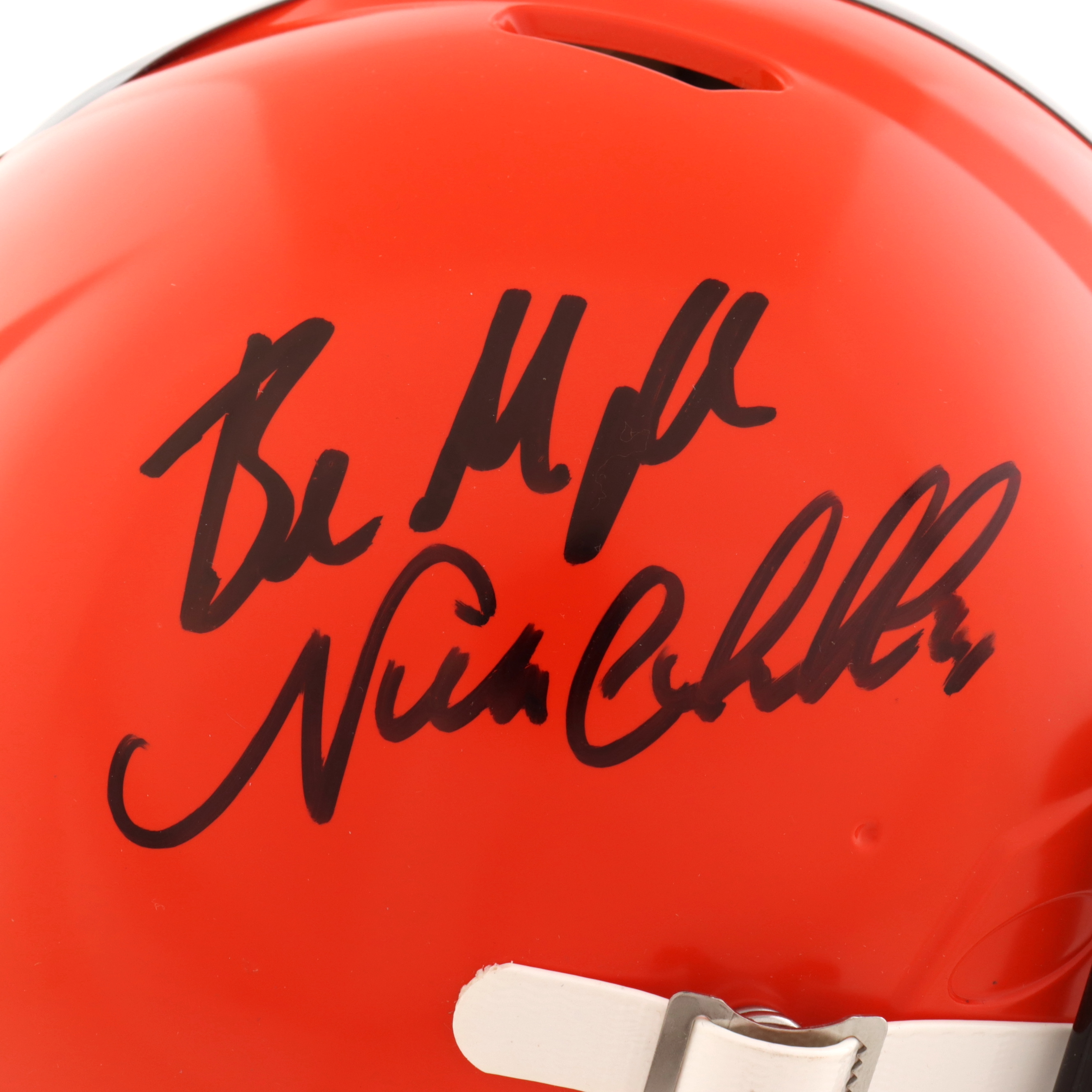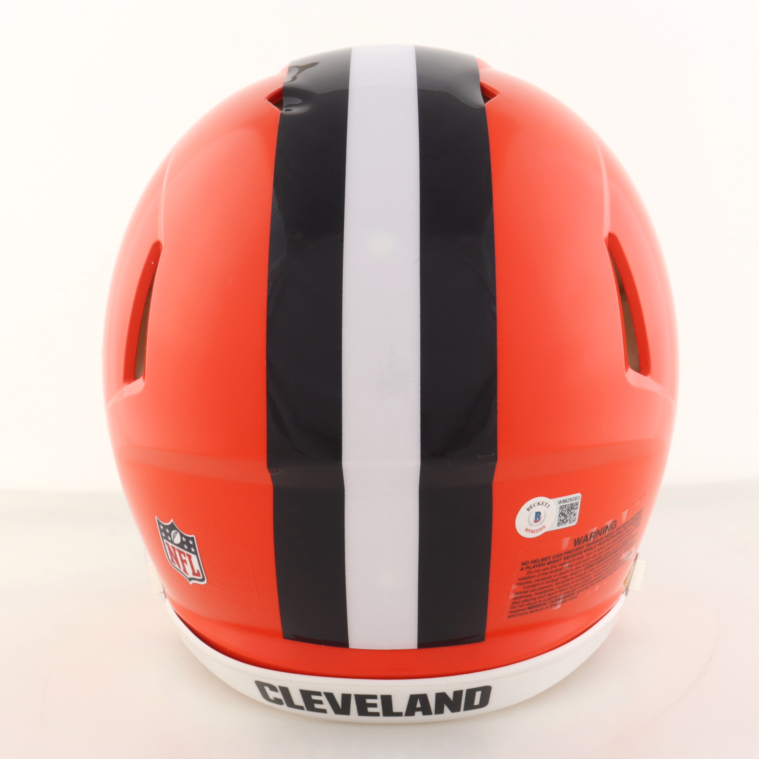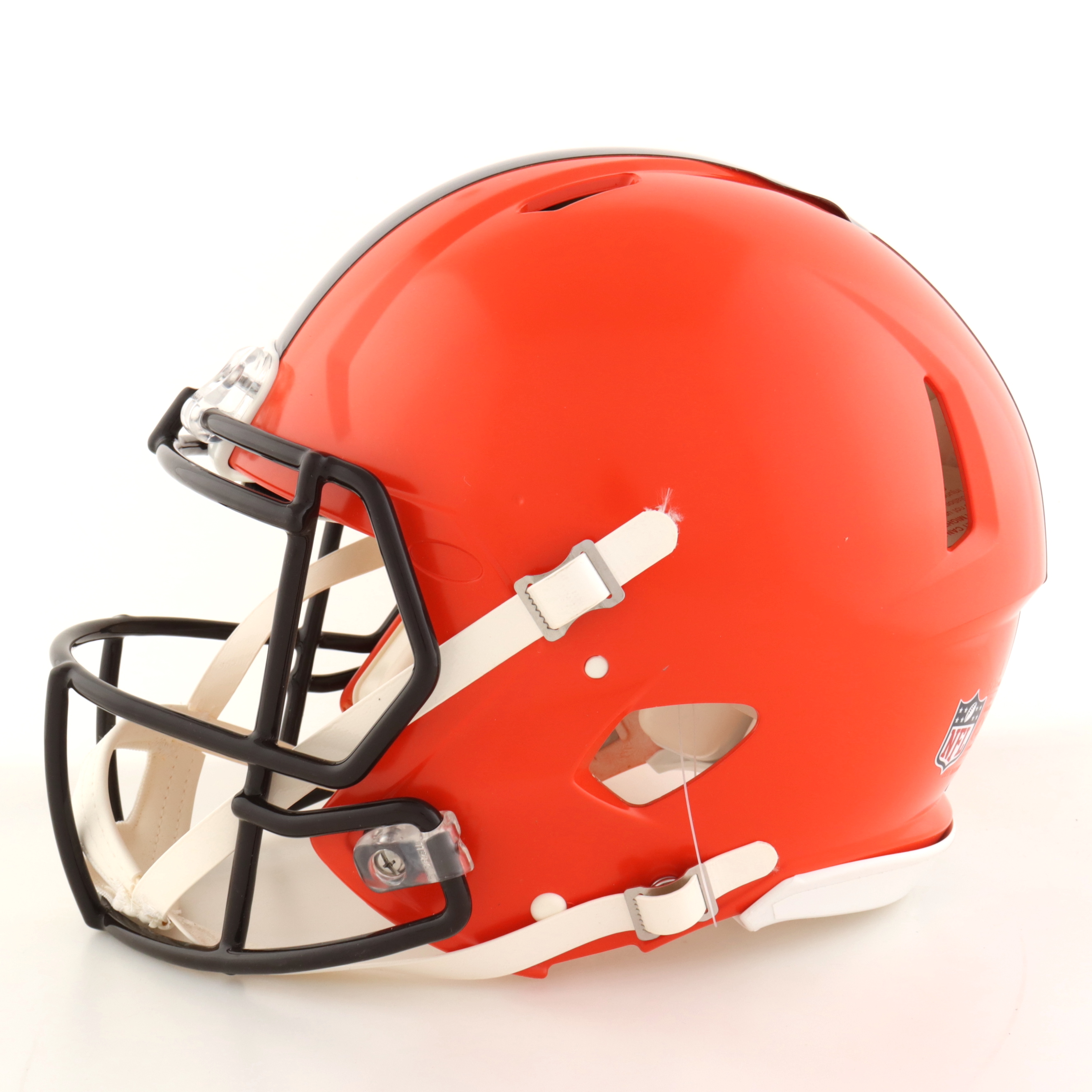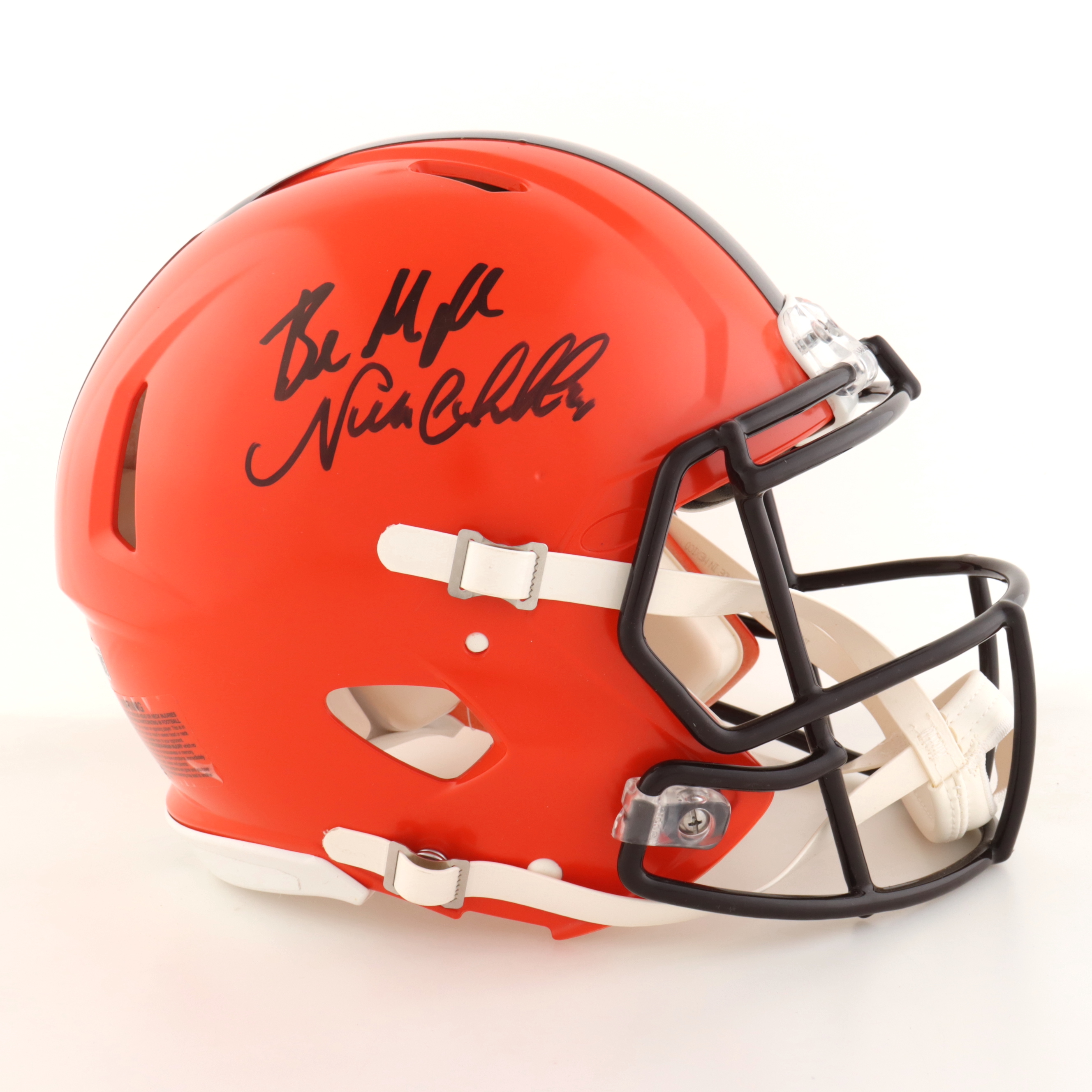 Riddell Cleveland Browns Full Size Authentic Speed Helmet. Hand Signed by Nick Chubb and Baker Mayfield.
