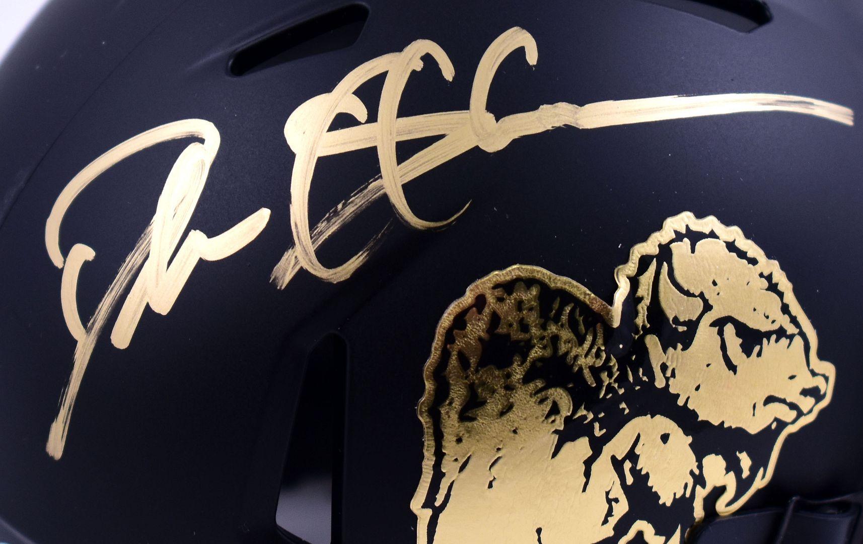 Riddell Colorado Buffaloes matte black Speed mini helmet. Hand-signed by Deion Sanders (HOF).