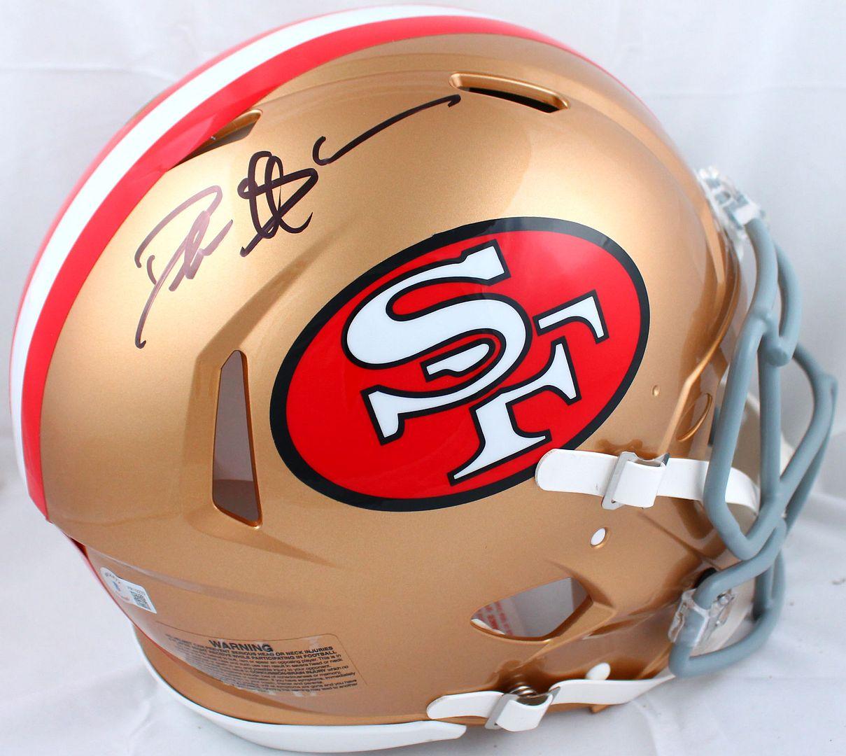 Riddell San Francisco 49ers full-size authentic on-field Speed helmet. Hand-signed by Deion Sanders (HOF).
