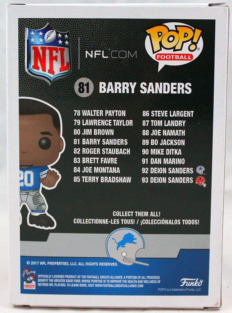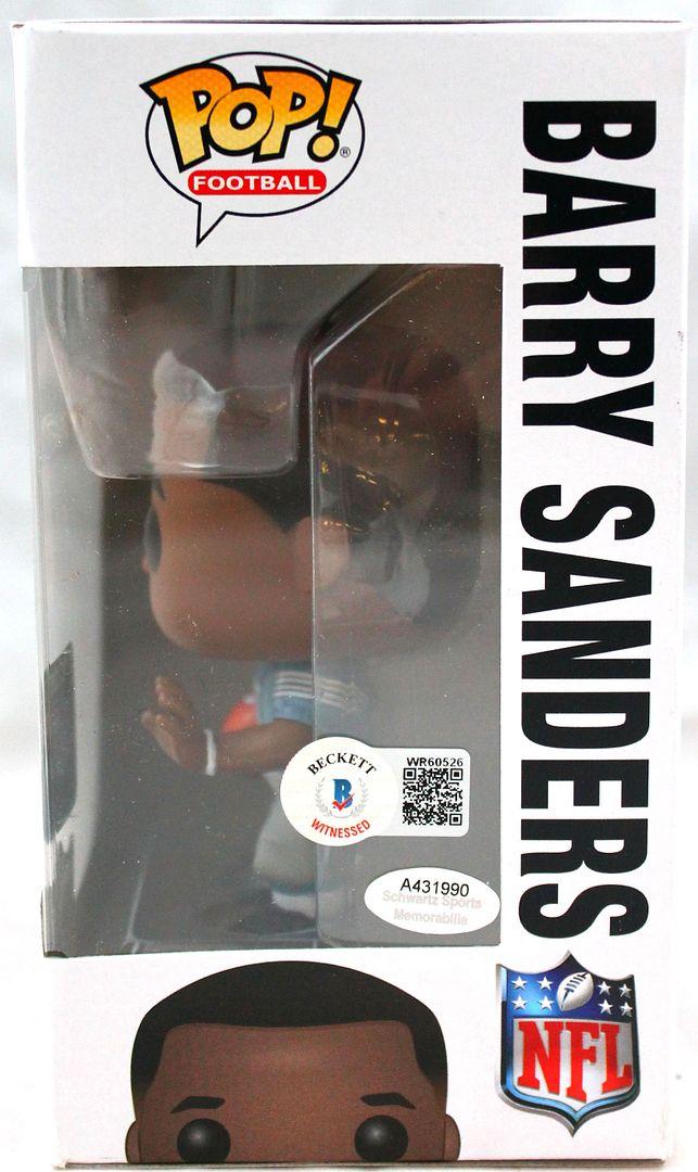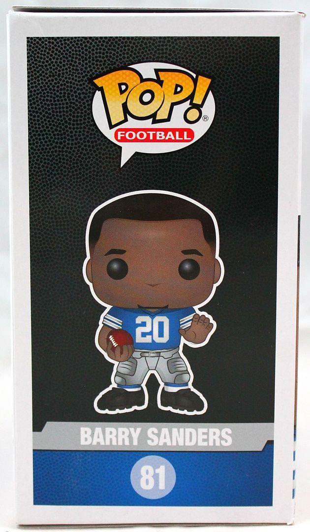 Funko Pop! vinyl figure measures 4" in height. Hand-signed on the packaging by Barry Sanders (Detroit Lions, HOF).