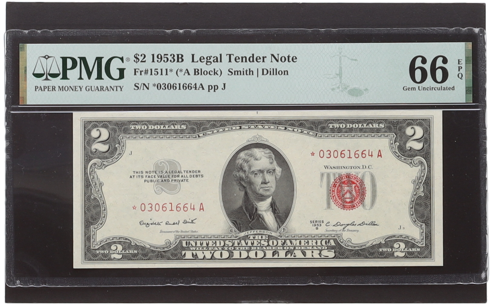 1953 $2 Two Dollar Legal Tender U.S. Bank Note (PMG 66 EPQ)