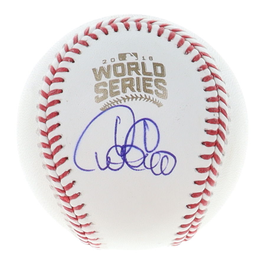 Rawlings Official 2016 World Series logo baseball. Hand-signed and inscribed by Wilson Contreras (Chicago Cubs).