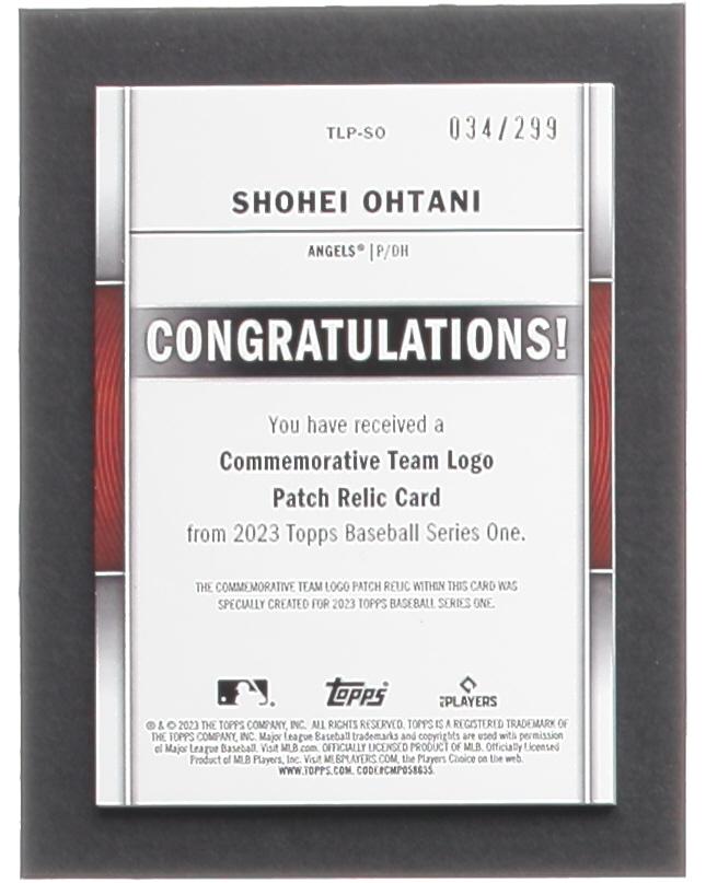 Shohei Ohtani 2023 Topps Team Logo Commemorative Patch Black #TLPSO #034/299