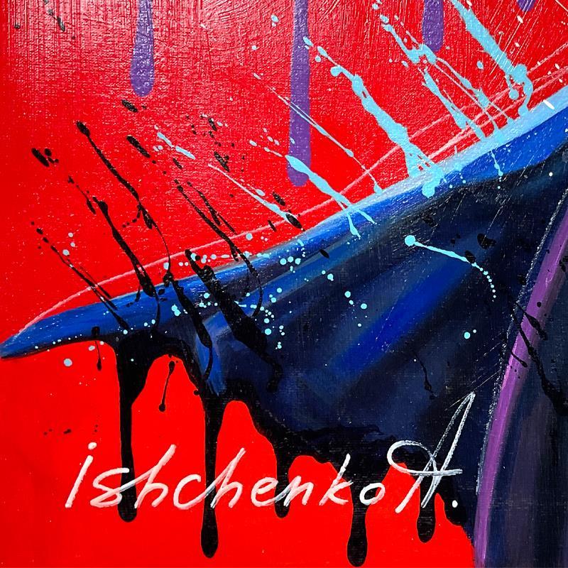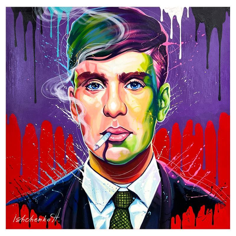 "Peaky Blinders" is an original acrylic painting on canvas by Alexander Ishchenko, hand signed by the artist. Includes Letter of Authenticity. Measures approx. 36" x 36" (image).