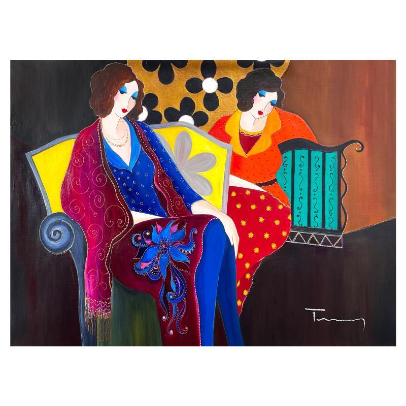 Itzchak Tarkay Signed "A Brief Respite" 37x27 One-of-a-Kind Mixed Media Over Paint on Canvas (PA)