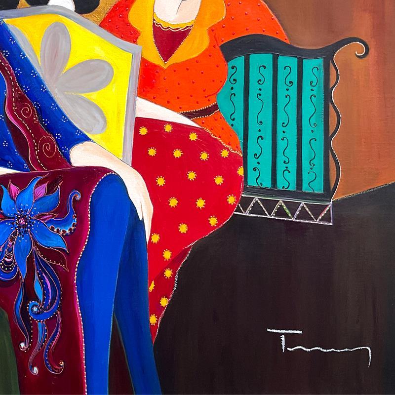 "A Brief Respite" is a one-of-a-kind mixed media over paint on canvas by Itzchak Tarkay (1935-2012), hand signed by the artist. Includes Letter of Authenticity. Measures approx. 37" x 27.5" (image).