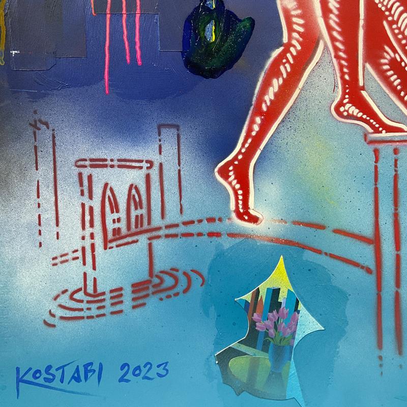 Mark Kostabi Signed "Beyond Ecstasy" 36x50 Original Mixed Media Painting (PA)
