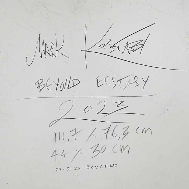 "Beyond Ecstasy" is an original mixed media painting on paper by Mark Kostabi, hand signed by the artist. The piece comes framed. Includes Certificate of Authenticity. Measures approx. 36" x 50" (frame), 30" x 44" (image).