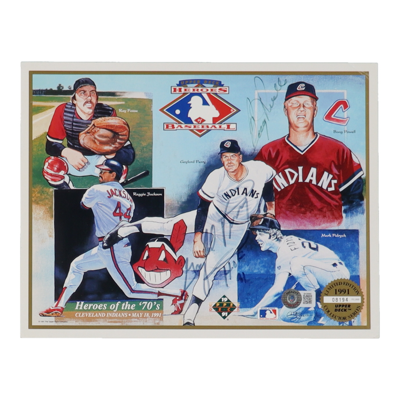 Print measures 8" x 10" in size. Hand-signed and inscribed by Boog Powell (Cleveland Indians) and Gaylord Perry (D. 2022, Cleveland Indians, HOF).