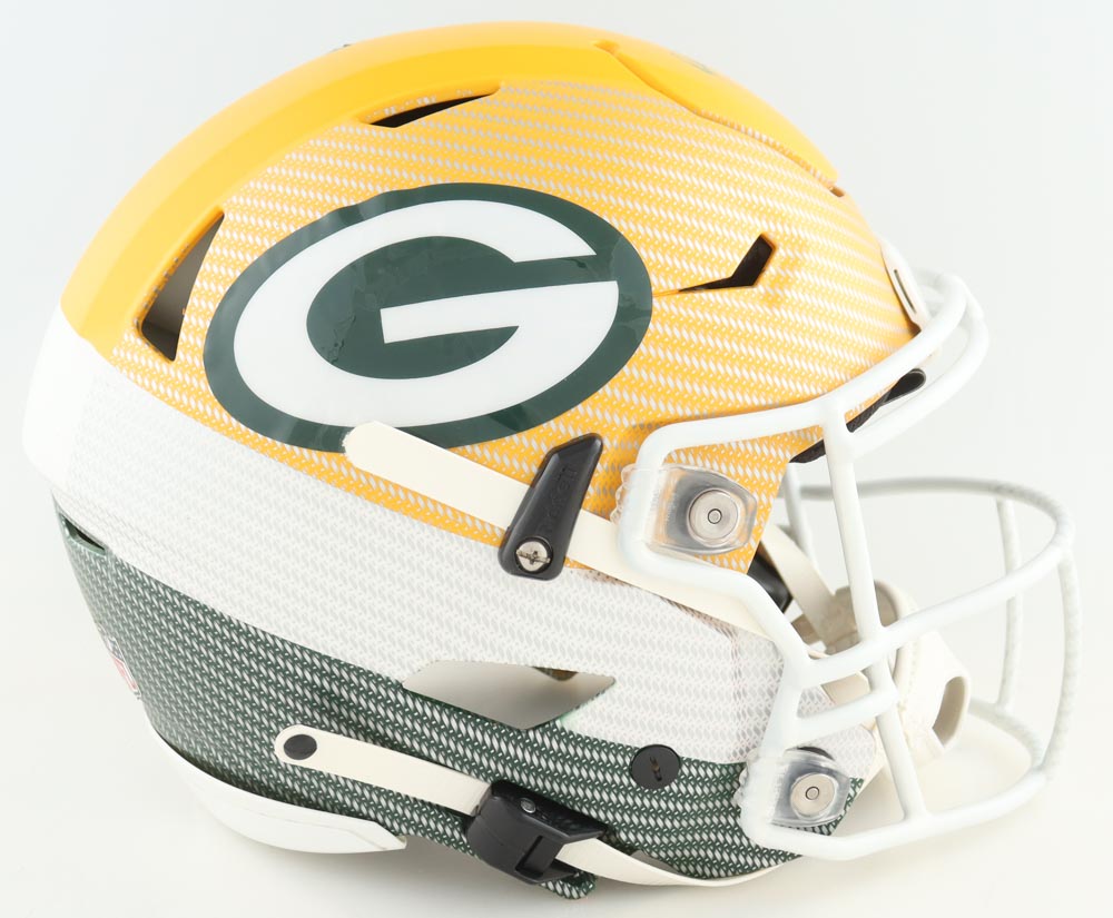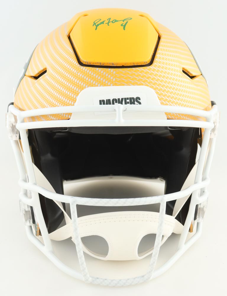 Riddell Green Bay Packers Full-Size Authentic On-Field Hydro-Dipped SpeedFlex Helmet. Hand-signed by Brett Favre (HOF).