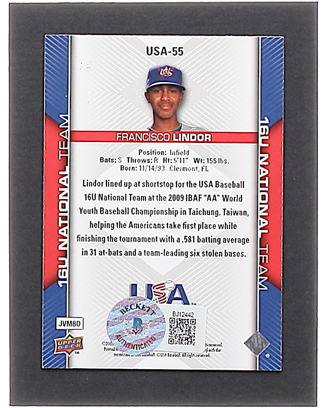 Francisco Lindor Signed 2009-10 USA Baseball #USA55 (Beckett)