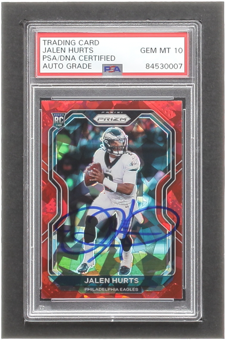 Jalen Hurts Signed 2020 Panini Prizm Prizms Red Ice #343 RC (PSA)