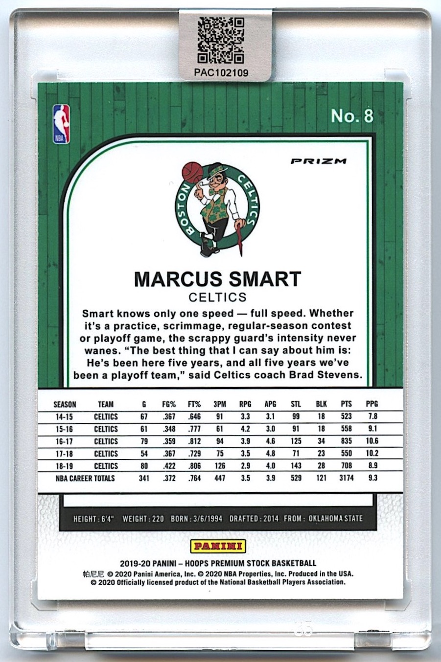 Marcus Smart Signed 2019-20 NBA Premium Stock Silver Pulsar Prizm #8 (PA Encapsulated)