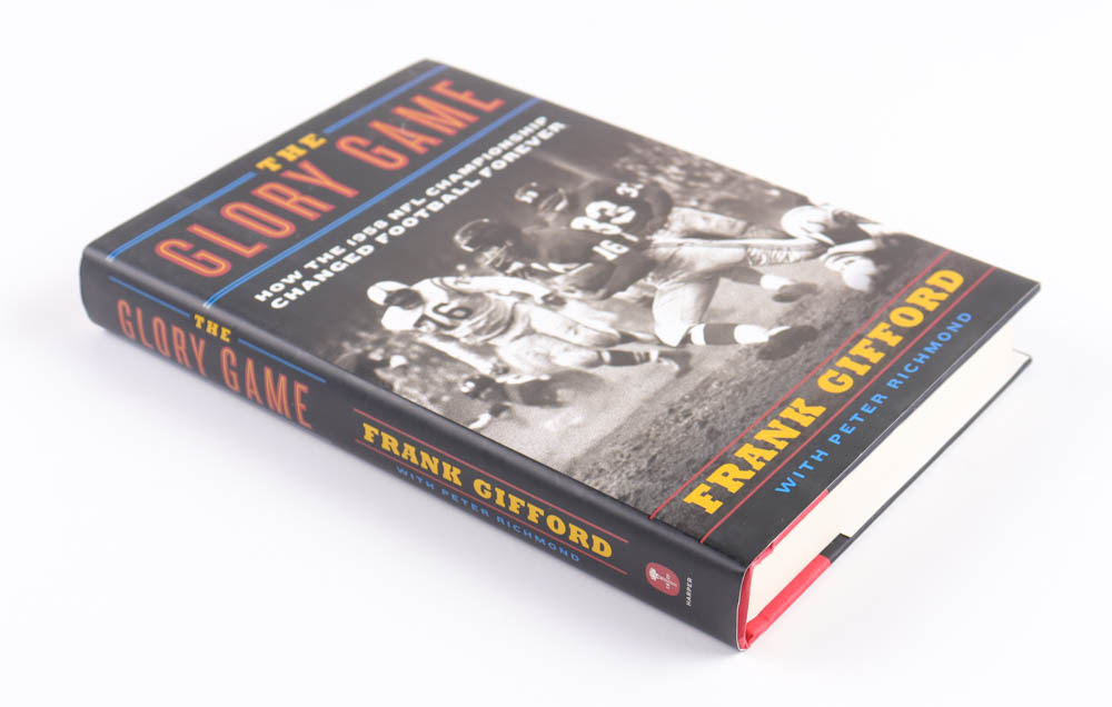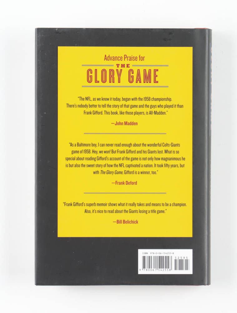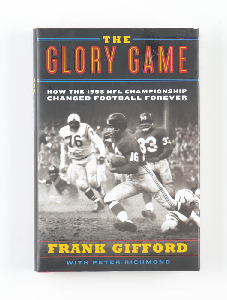 "The Glory Game" hardcover book has been hand-signed and inscribed on the inside by Frank Gifford (D.2015, New York Giants, HOF).