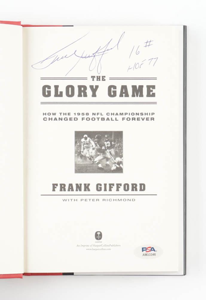 Frank Gifford Signed "The Glory Game" Hardcover Book Inscribed "HOF 77" (PSA)