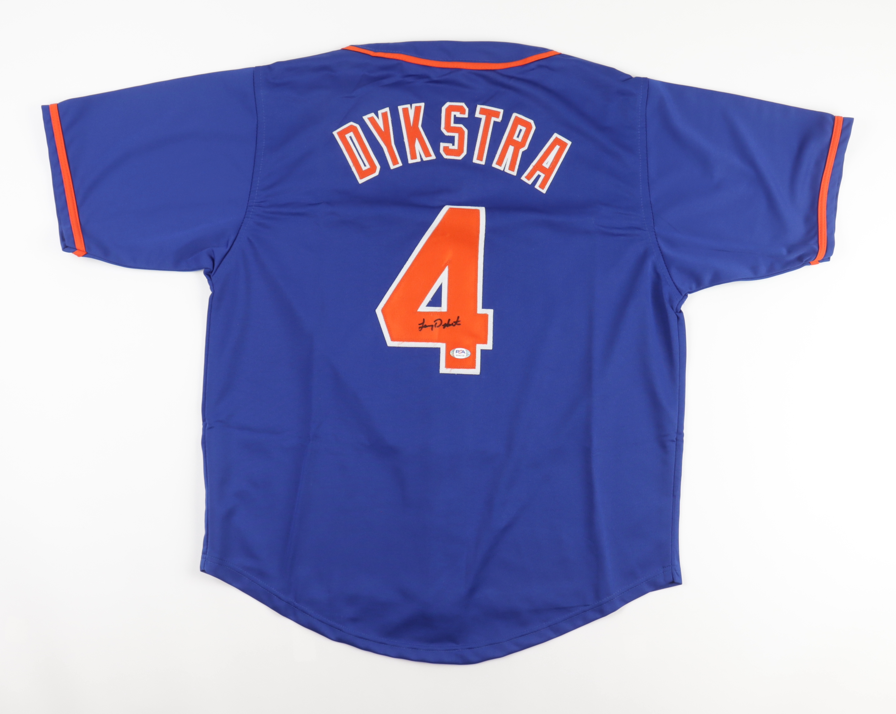 Custom jersey with everything sewn on, size XL. Has been hand-signed by Lenny Dykstra.