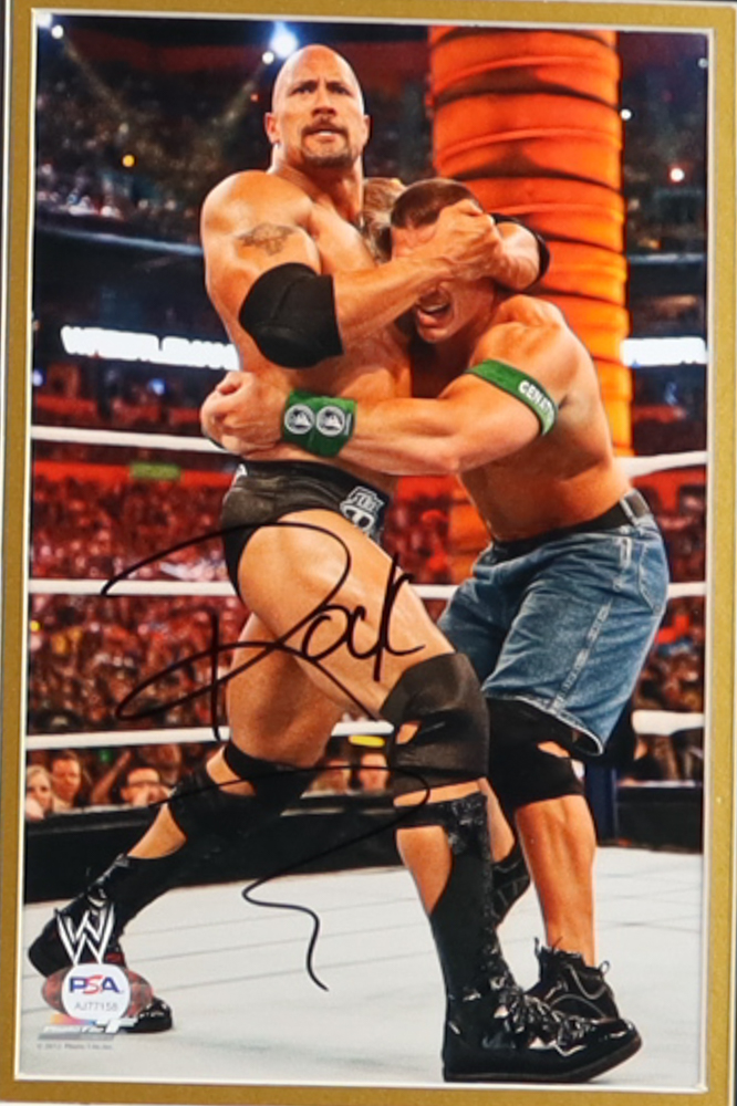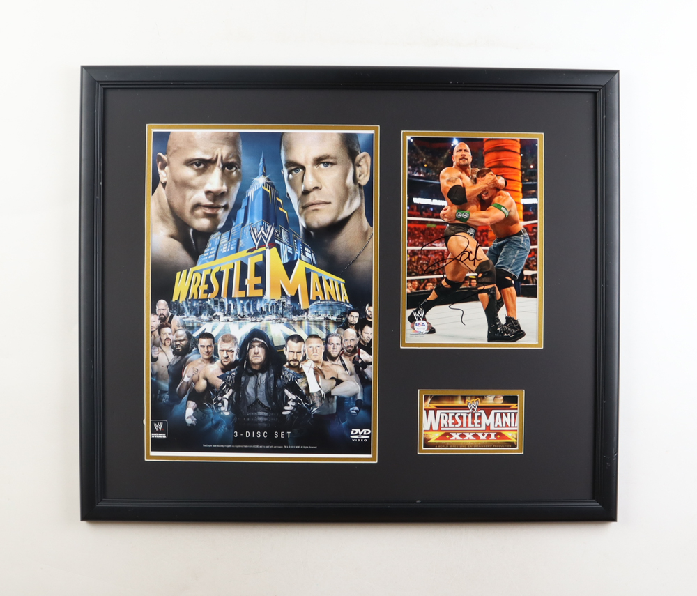 Dwayne "The Rock" Johnson Signed WWE Custom Framed Photo Display (PSA) (See Description)