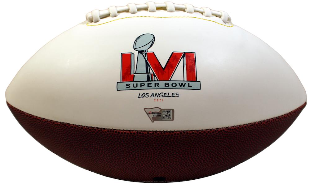 Super Bowl LVI Match-Up logo football. Hand-signed by Matthew Stafford (Los Angeles Rams).