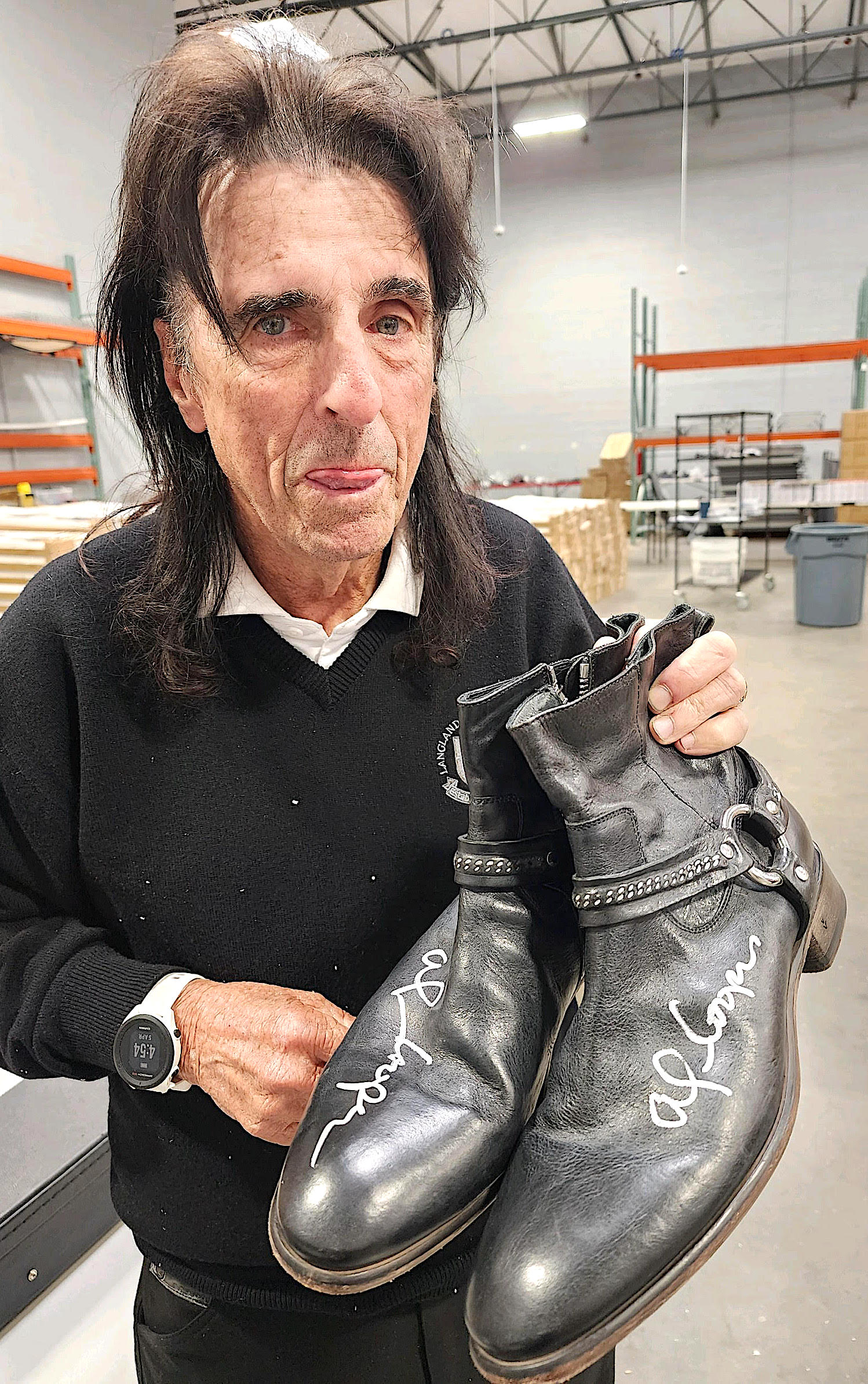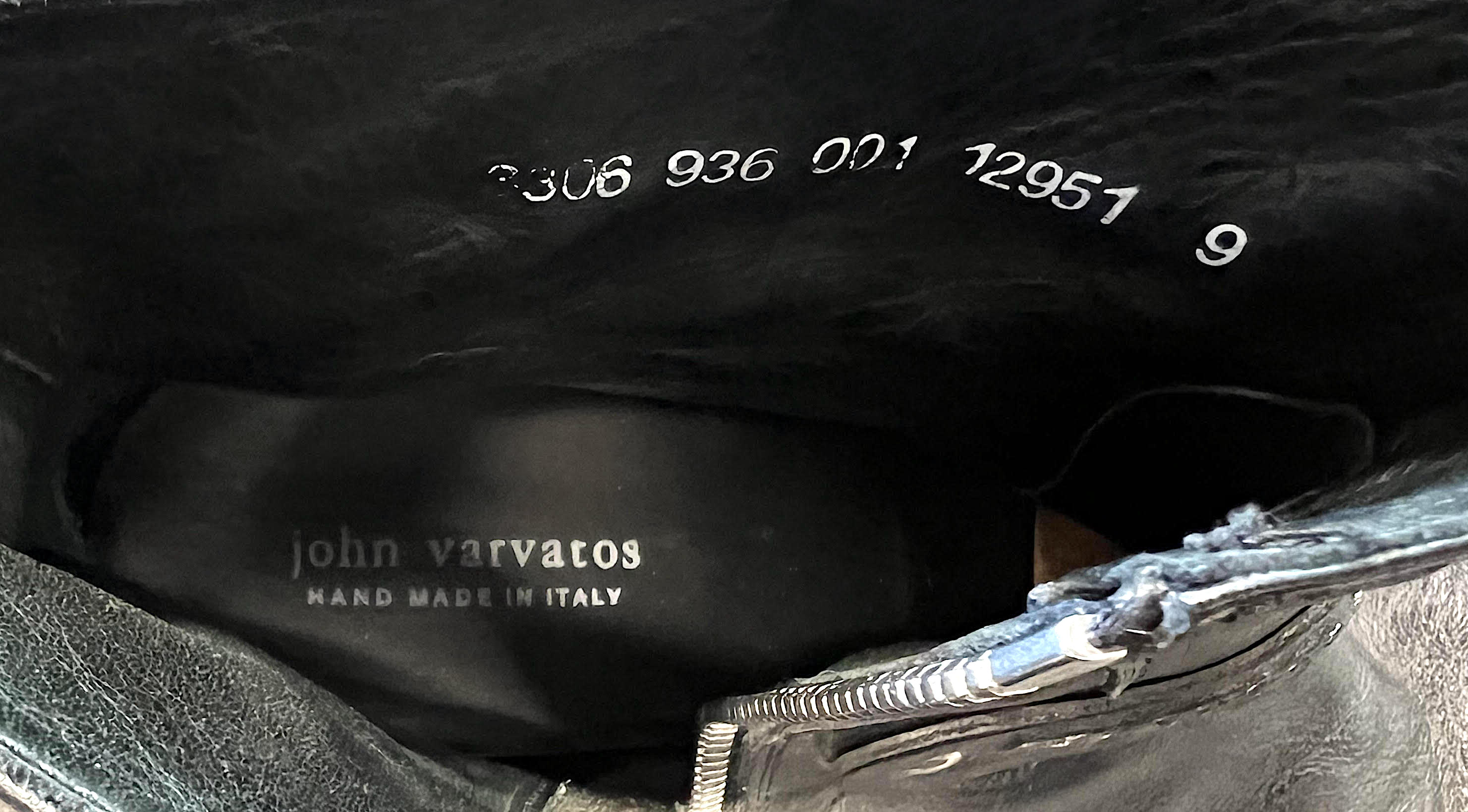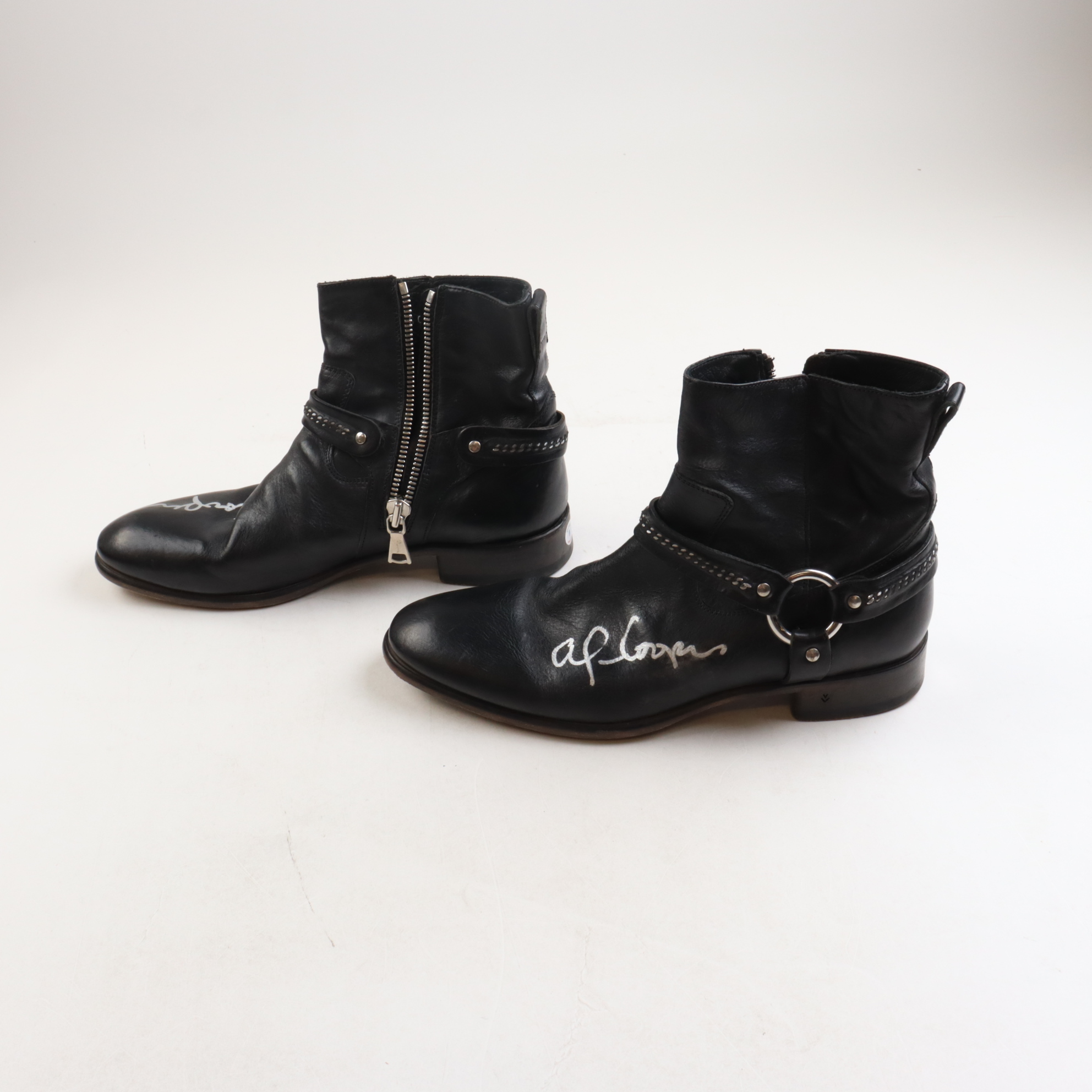 This pair of boots comes directly from the personal collection of rock legend Alice Cooper. The boots are made by John Varvatos and are size 9. The shoes show heavy use! These were likely worn on stage at some point in Cooper's carear (likely multiple times)