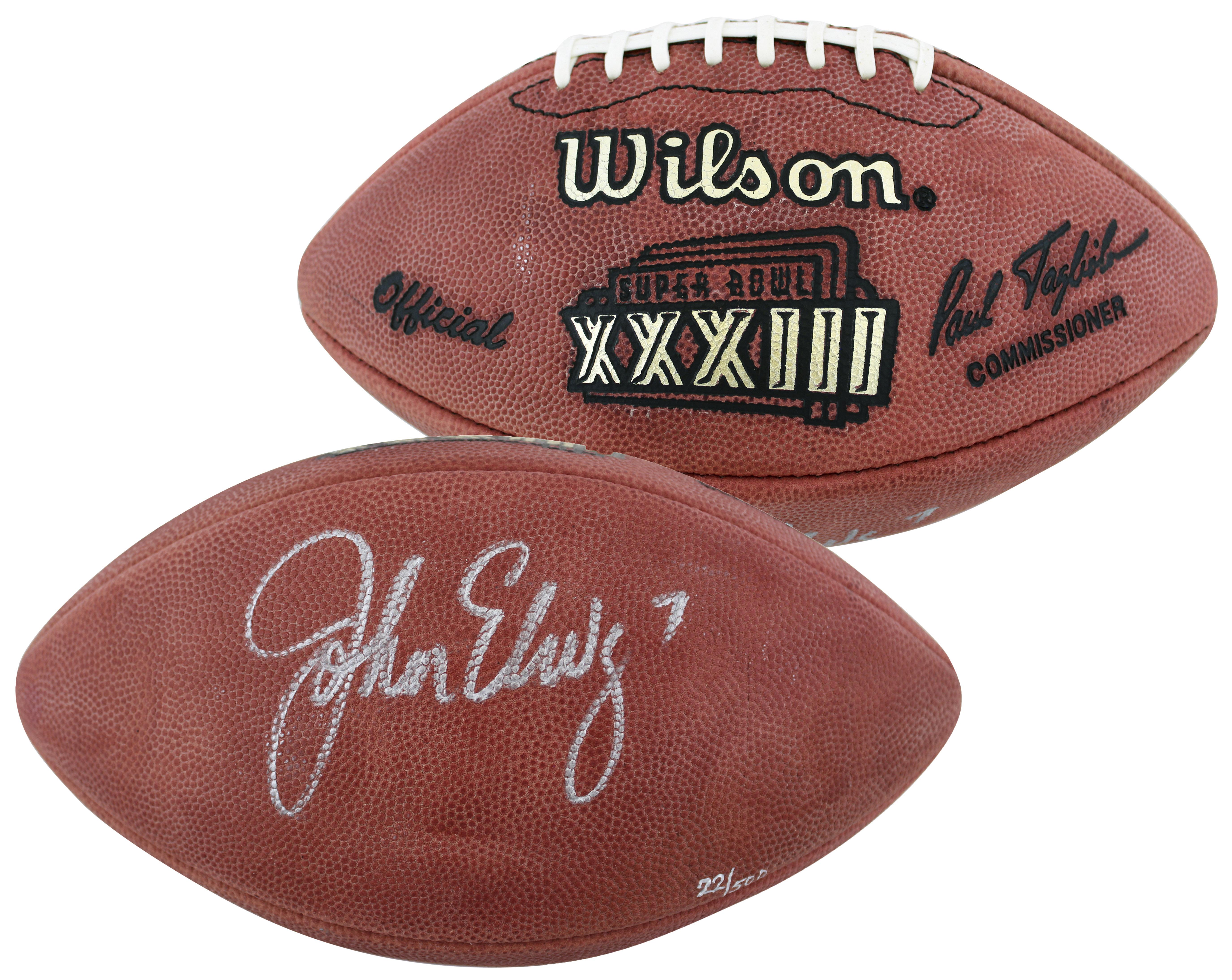 Official Wilson Super Bowl XXXIII Logo NFL Football. Hand-signed by John Elway (Denver Broncos, HOF)