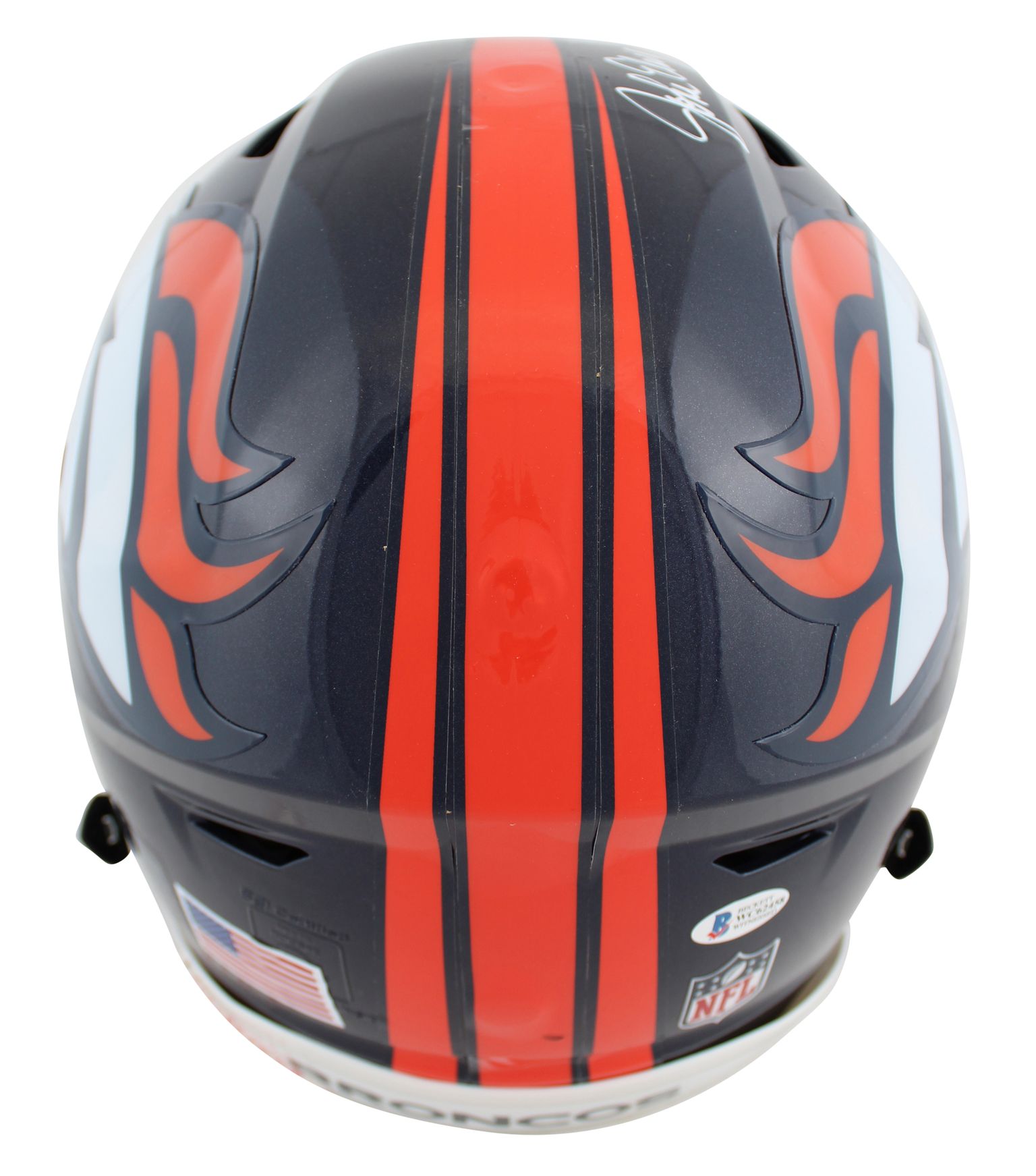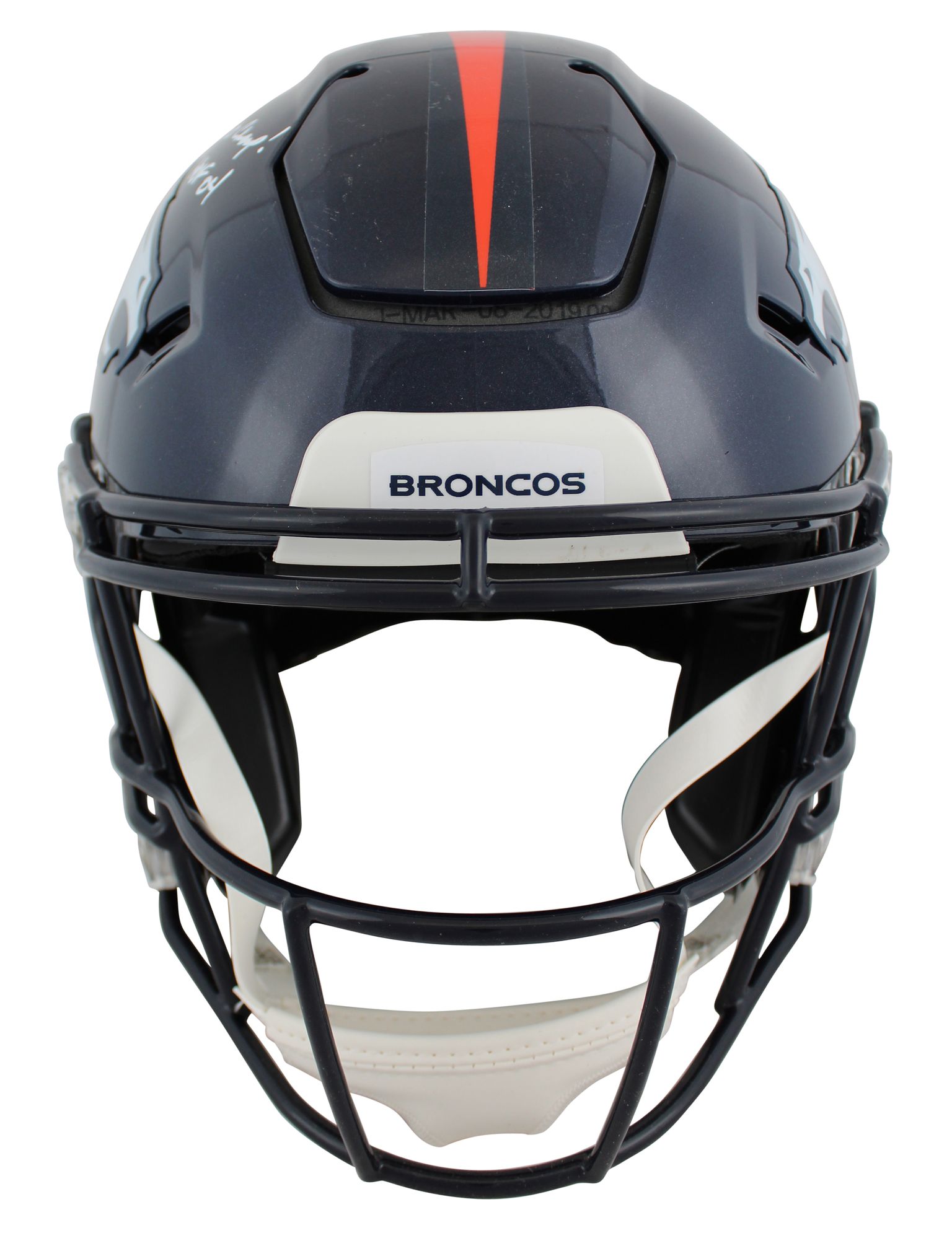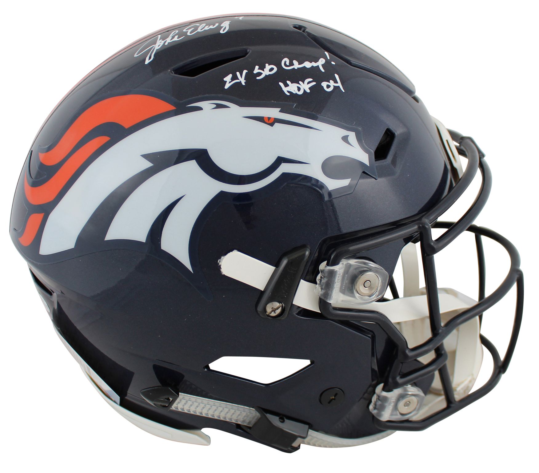 Riddell Denver Broncos full-size authentic on-field SpeedFlex helmet. Hand-signed and inscribed by John Elway (HOF).