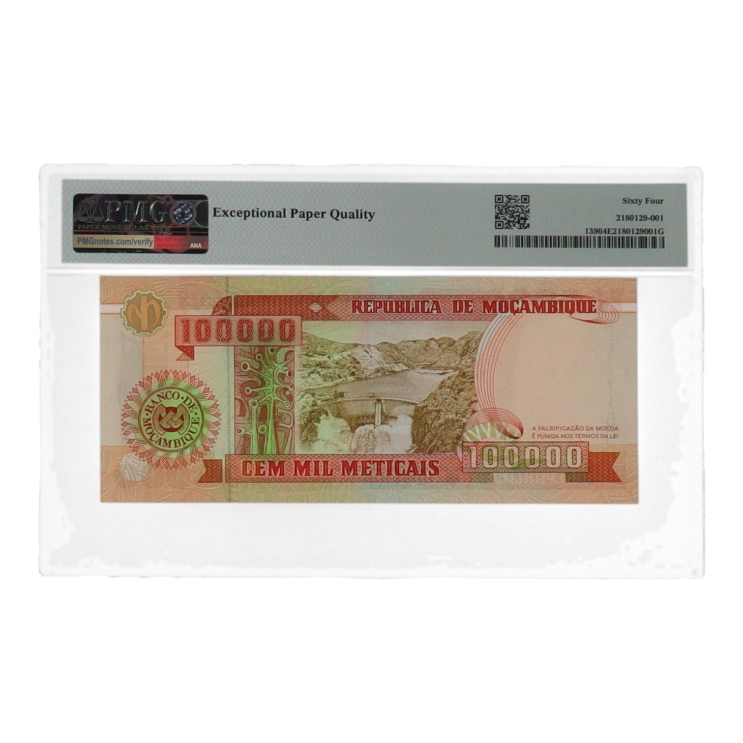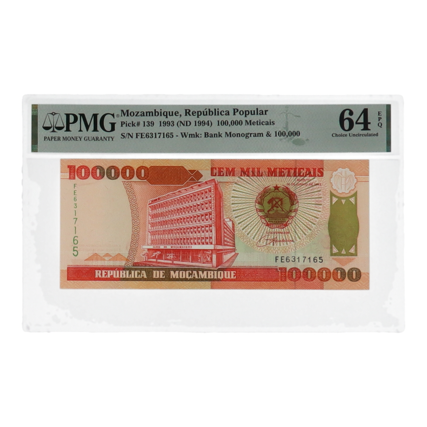 1993 (ND 1994) Mozambique 100,000 Meticais Republica Popular Banknote (PMG CU 64EPQ)