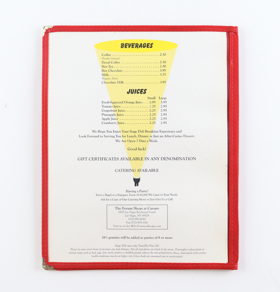 Pete Rose Signed "Stage Deli Of New York" Restaurant Menu (PSA)