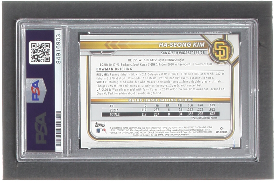 Ha-Seong Kim Signed 2022 Bowman #5 RC (PSA)