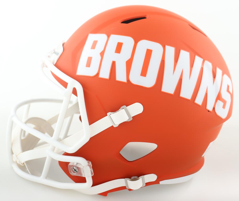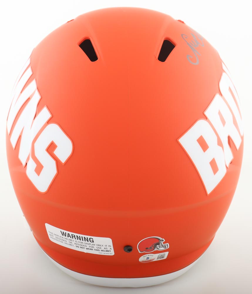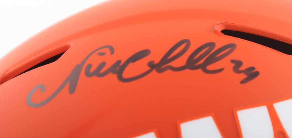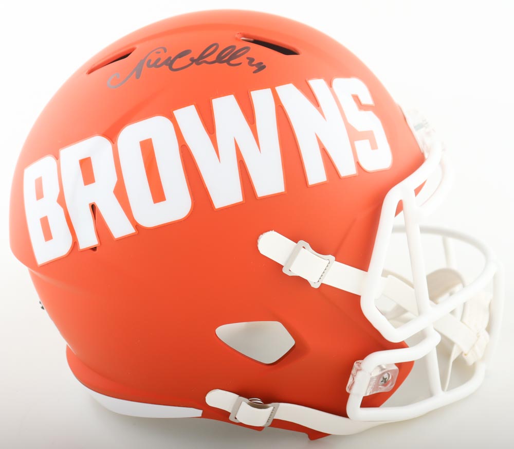 Riddell Cleveland Browns full-size speed replica helmet has been hand-signed by Nick Chubb.
