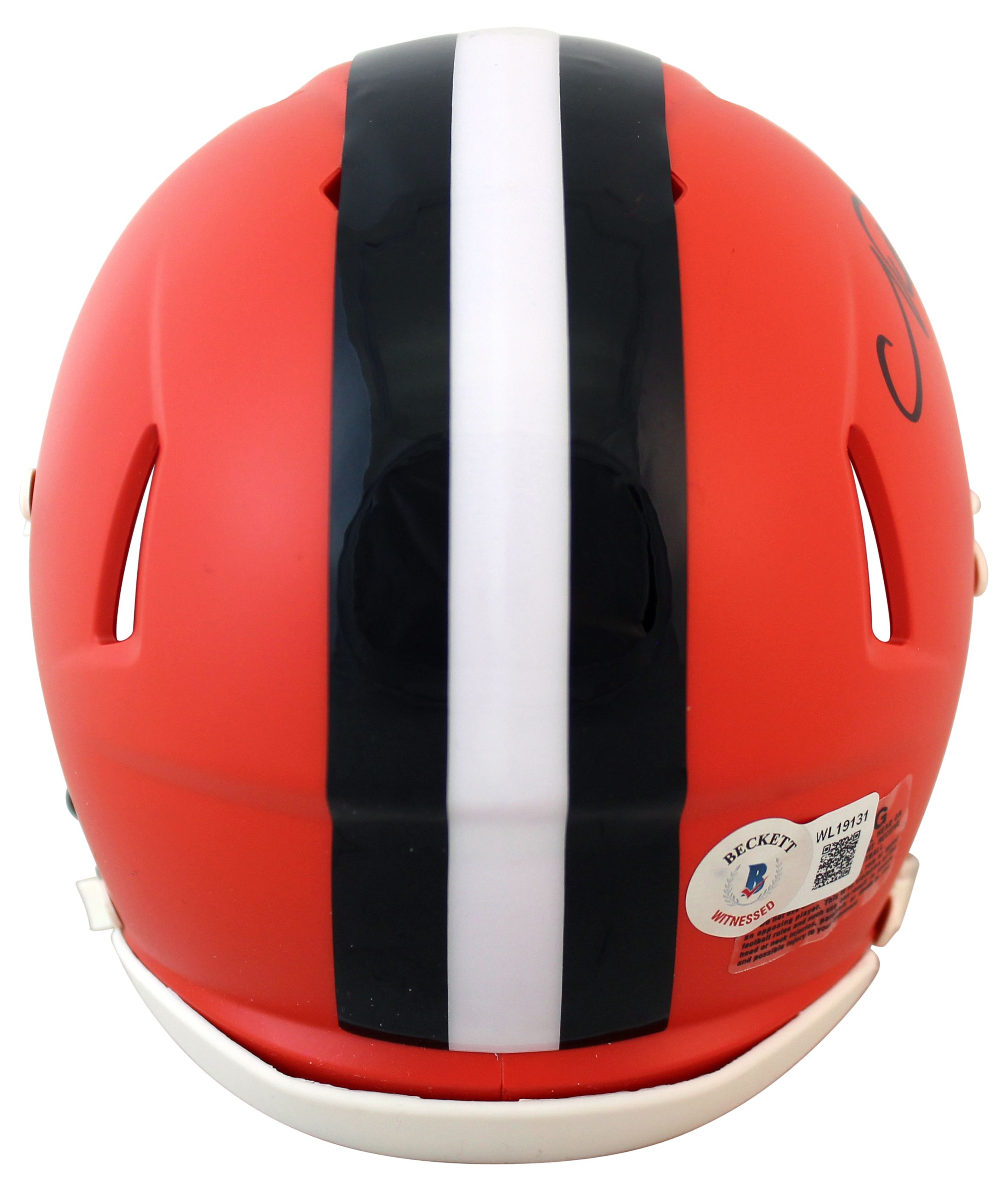 Riddell Cleveland Browns Speed mini helmet has been hand-signed by Nick Chubb.