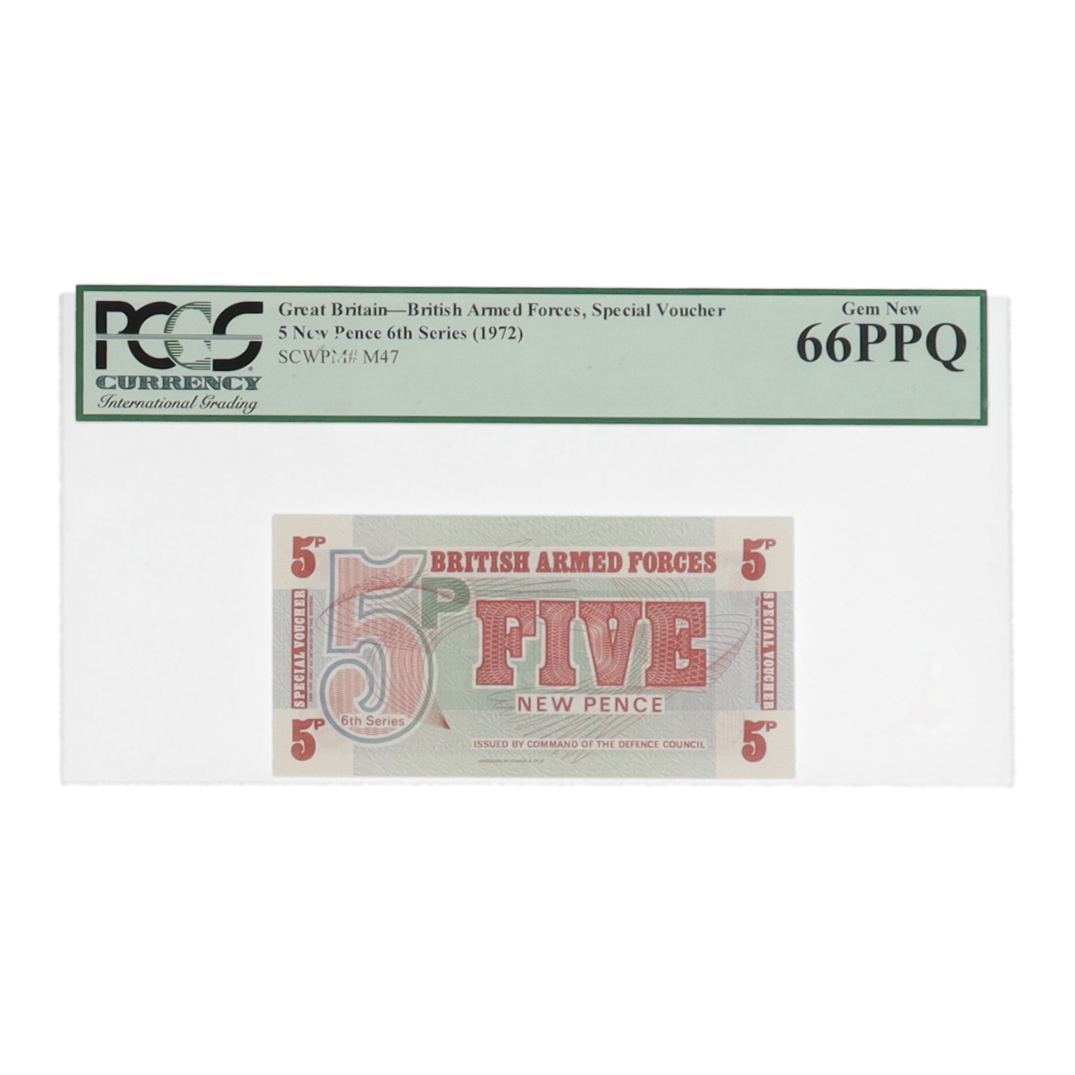 1972 Great Britain 5 New Pence British Armed Forces Special Voucher (PCGS Gem New 66PPQ)